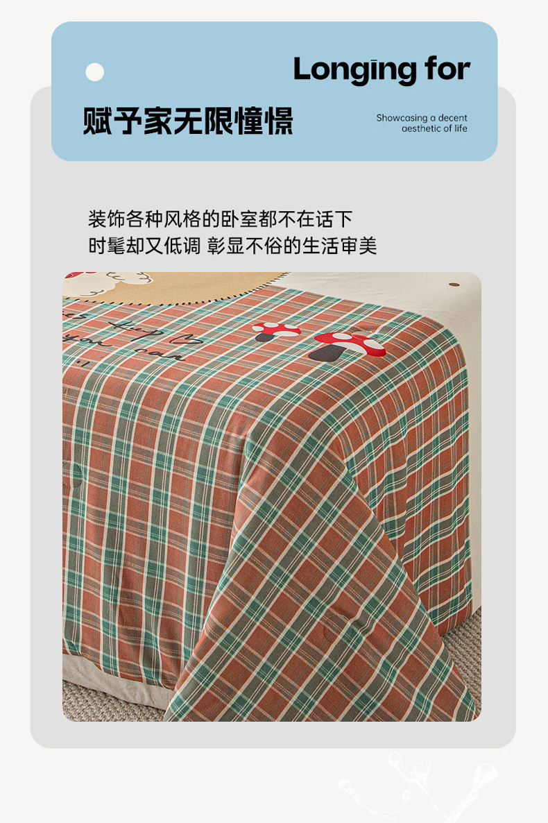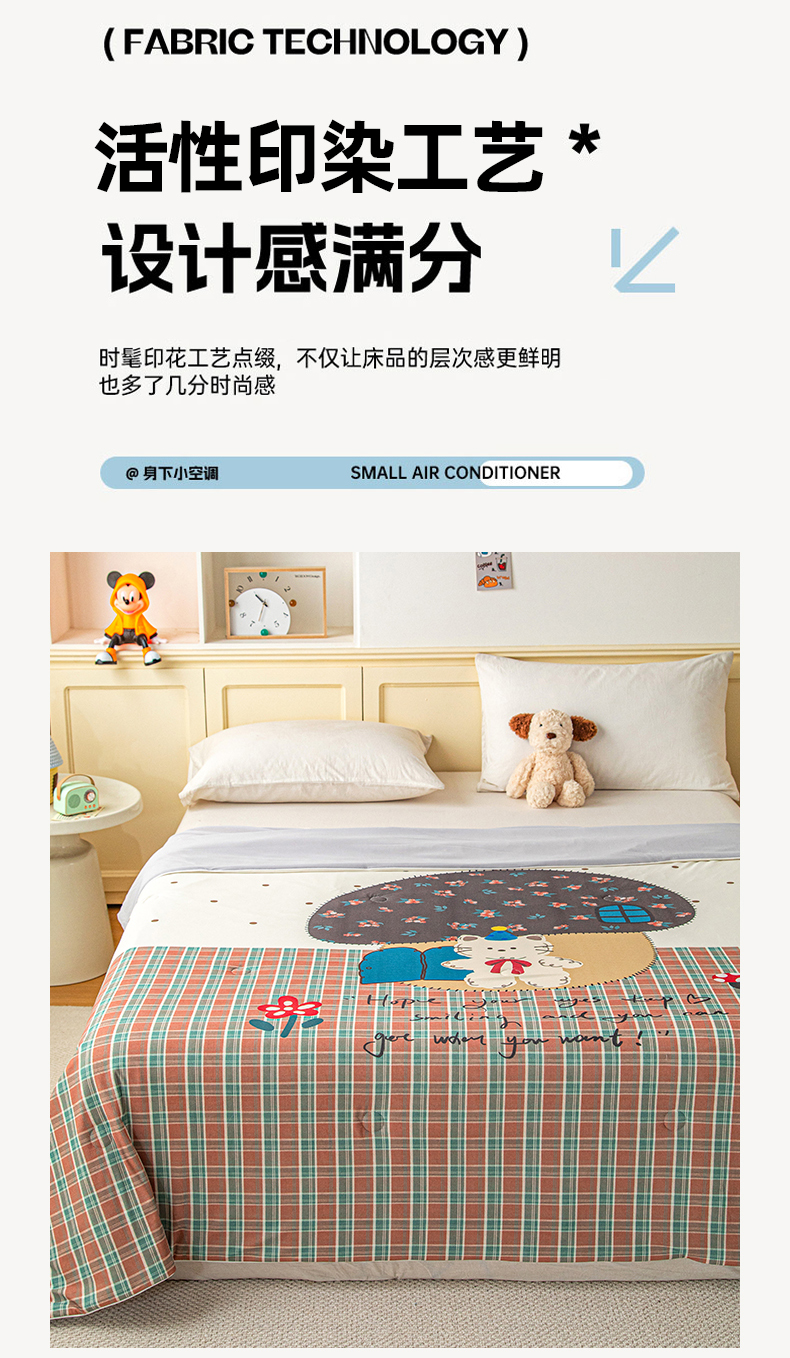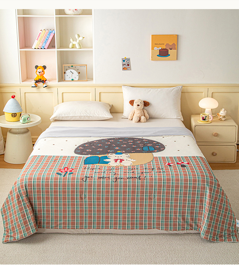 商品名称:亿莱鑫 2026春夏新款卡通印花仿锦氨夏被夏凉被空调被 蘑菇熊屋
