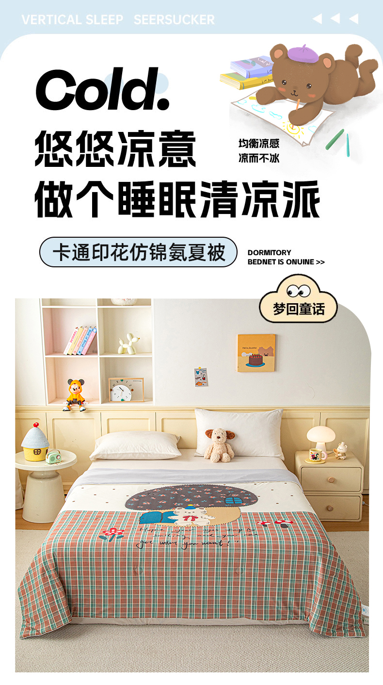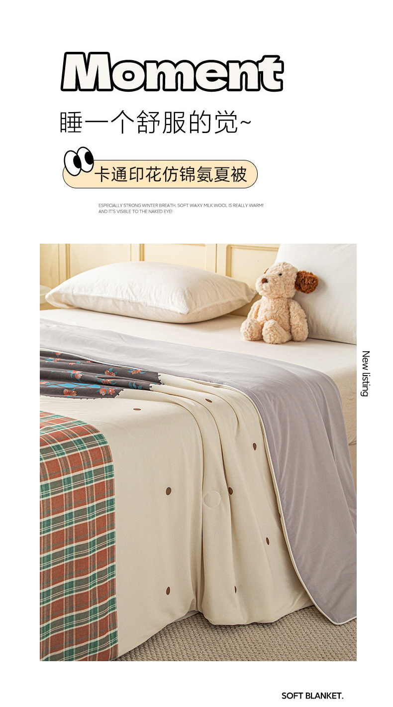 (总)亿莱鑫 2026春夏新款卡通印花仿锦氨夏被夏凉被空调被,彩绘小熊,格纹小象,蘑菇熊屋,树屋熊趣,甜品聚会,星梦萌友,星星小象,熊仔面包店