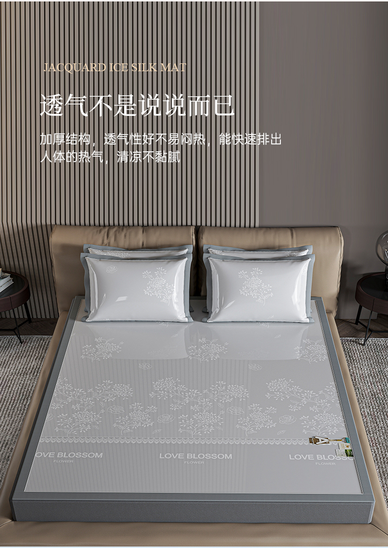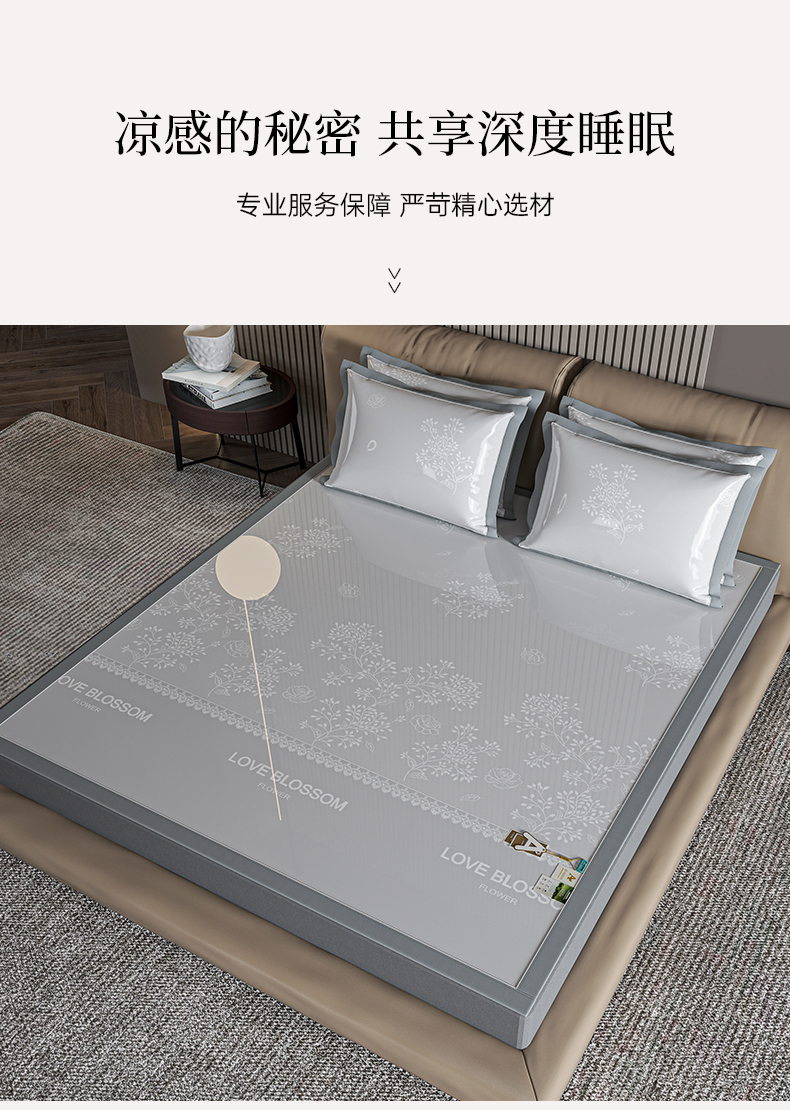 (总)小牛席业 2026春夏新款【实拍风格】PE凉感小碎花提花冰丝席,灰色,粉色,蓝色,抹茶,香槟