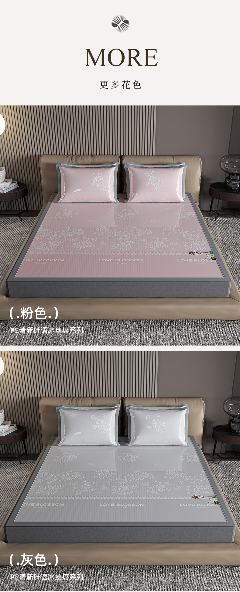 (总)小牛席业 2026春夏新款【实拍风格】PE凉感凉席席子-轻奢赫本(床笠款),轻奢赫本-灰色,轻奢赫本-粉色,轻奢赫本-蓝色,轻奢赫本-香槟
