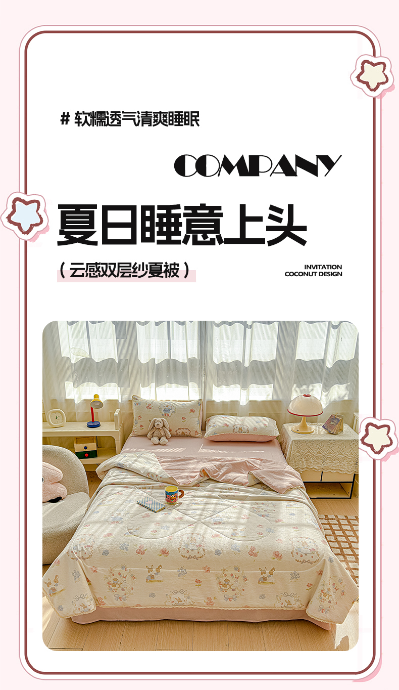 (总)贝扬思家纺 2026新款云感双层纱7A抗菌夏被四件套系列-栀夏系列,栀夏-动物游园,栀夏-海盐汤圆,栀夏-镜子里的兔,栀夏-困蝶,栀夏-浪漫兔兔,栀夏-梦境之间,栀夏-葡萄多多,栀夏-俏皮狗,栀夏-清风雨雾蓝,栀夏-晴天小猫,栀夏-苏瑾,栀夏-童话花岛,栀夏-童年木马,栀夏-像素小猫,栀夏-序曲粉,栀夏-熏衣草,栀夏-樱桃奶球,栀夏-摘星,栀夏-竹歆花语