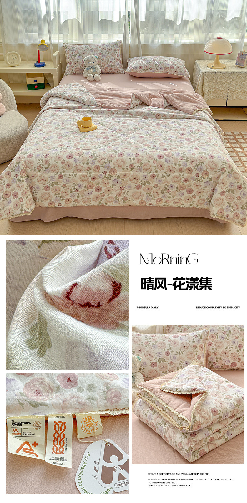 贝扬思家纺 2026新款云感双层纱抗菌花边夏被-晴风系列 晴风-苏瑾