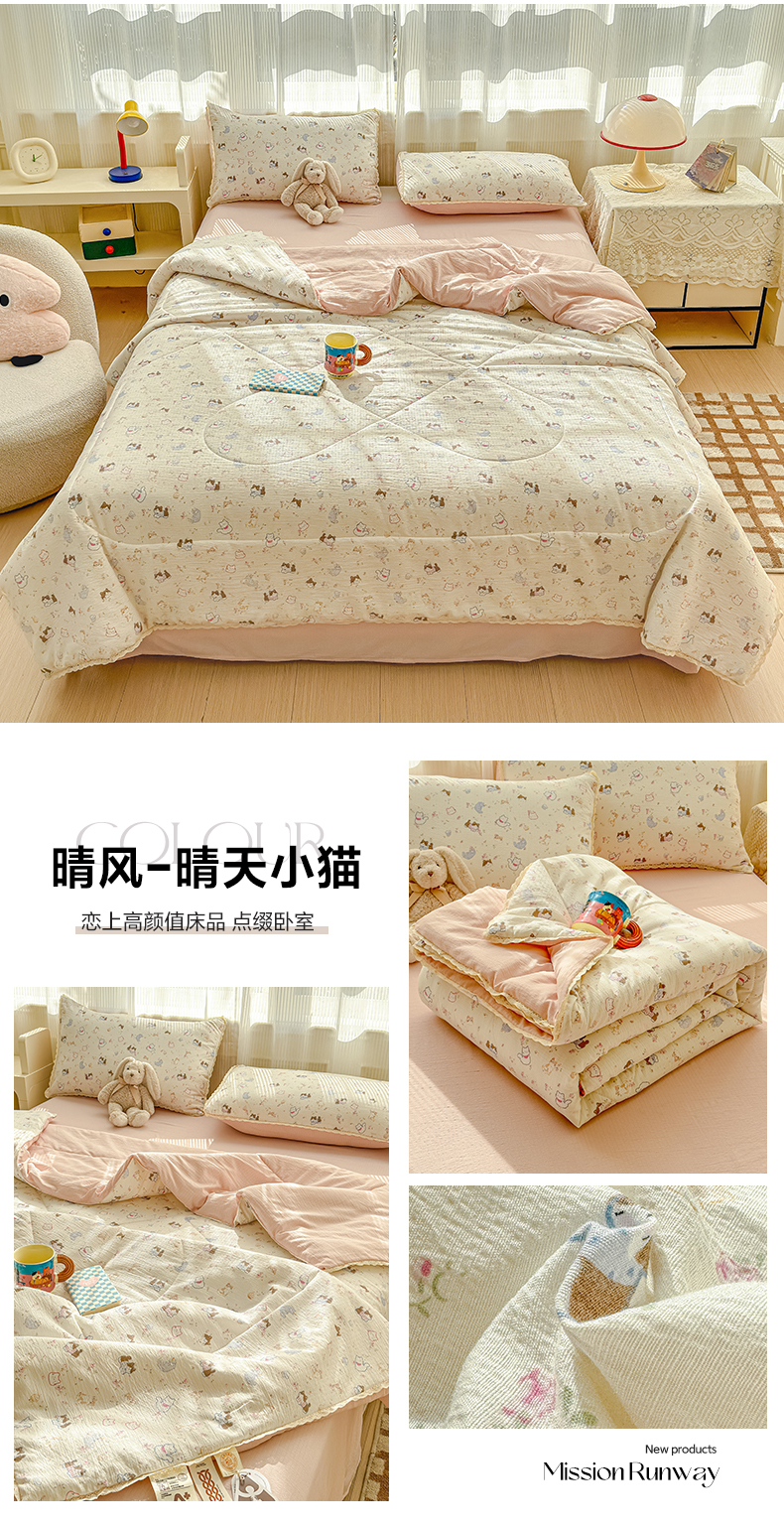 (总)贝扬思家纺 2026新款云感双层纱抗菌花边夏被-晴风系列,晴风-春日小花,晴风-动物游园,晴风-海盐汤圆,晴风-花漾集,晴风-镜子里的兔,晴风-困蝶,晴风-浪漫兔兔,晴风-梦境之间,晴风-葡萄多多,晴风-俏皮狗,晴风-清风与雾蓝,晴风-晴天小猫,晴风-苏瑾,晴风-甜橙花事,晴风-童话花岛,晴风-童年木马,晴风-像素小猫,晴风-序曲粉,晴风-薰衣草,晴风-樱桃奶球,晴风-摘星,晴风-竹歆花语