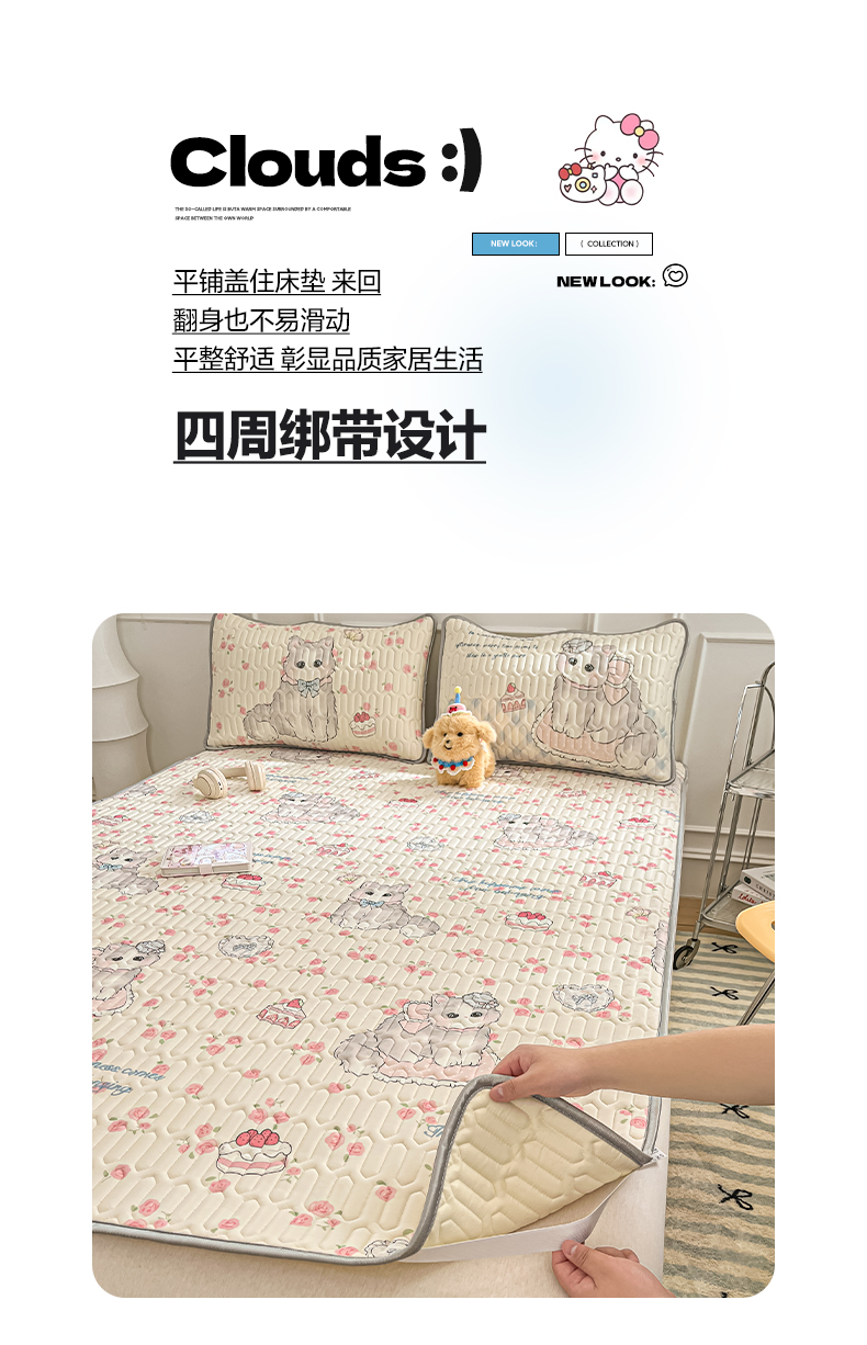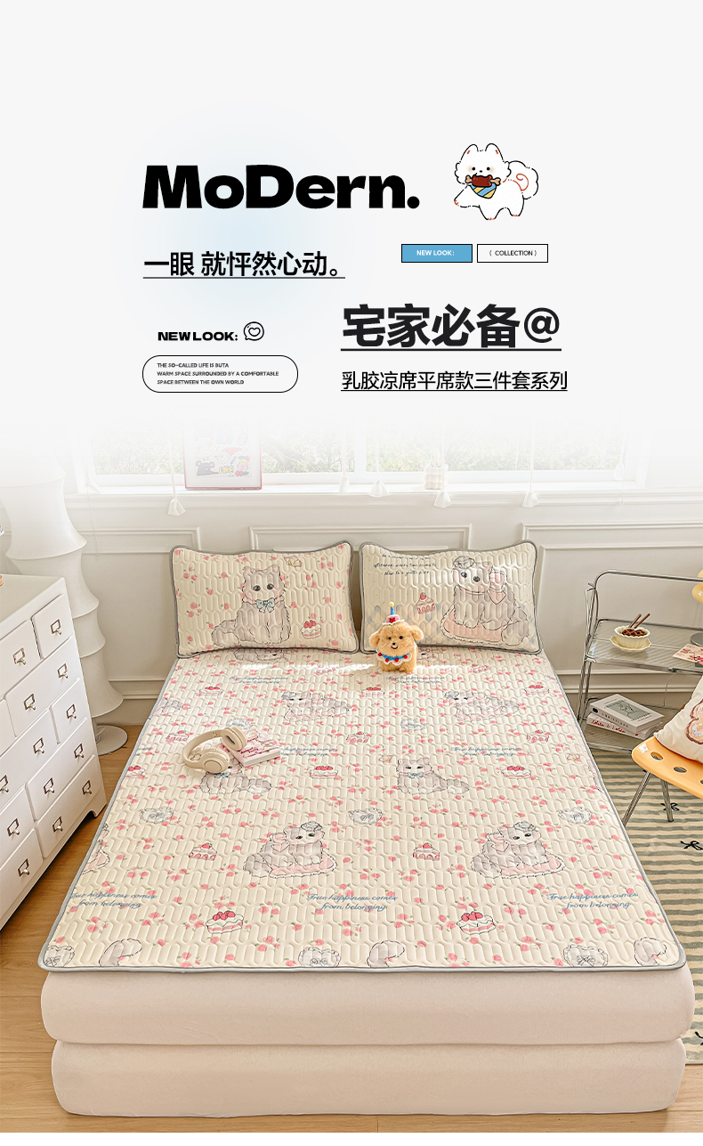 摩妮卡 2026新款数码大版小清新乳胶凉席床席款三件套-场景一 优雅甜心猫猫