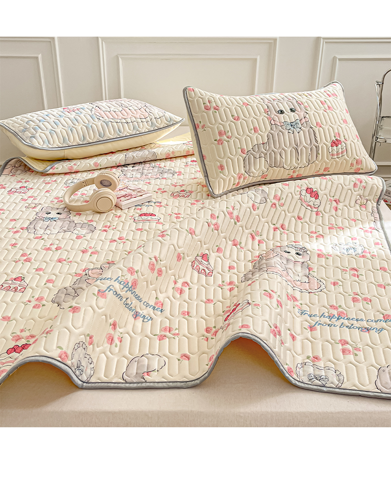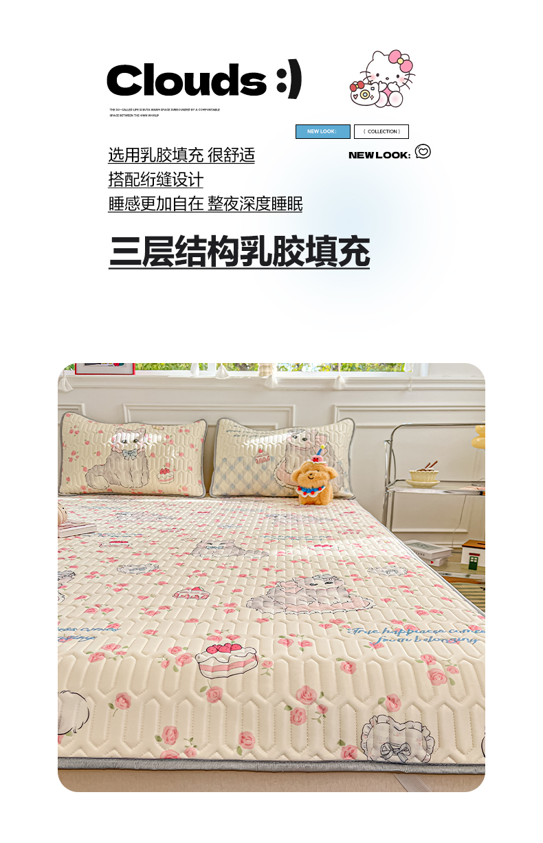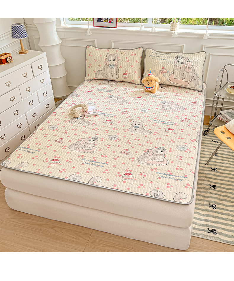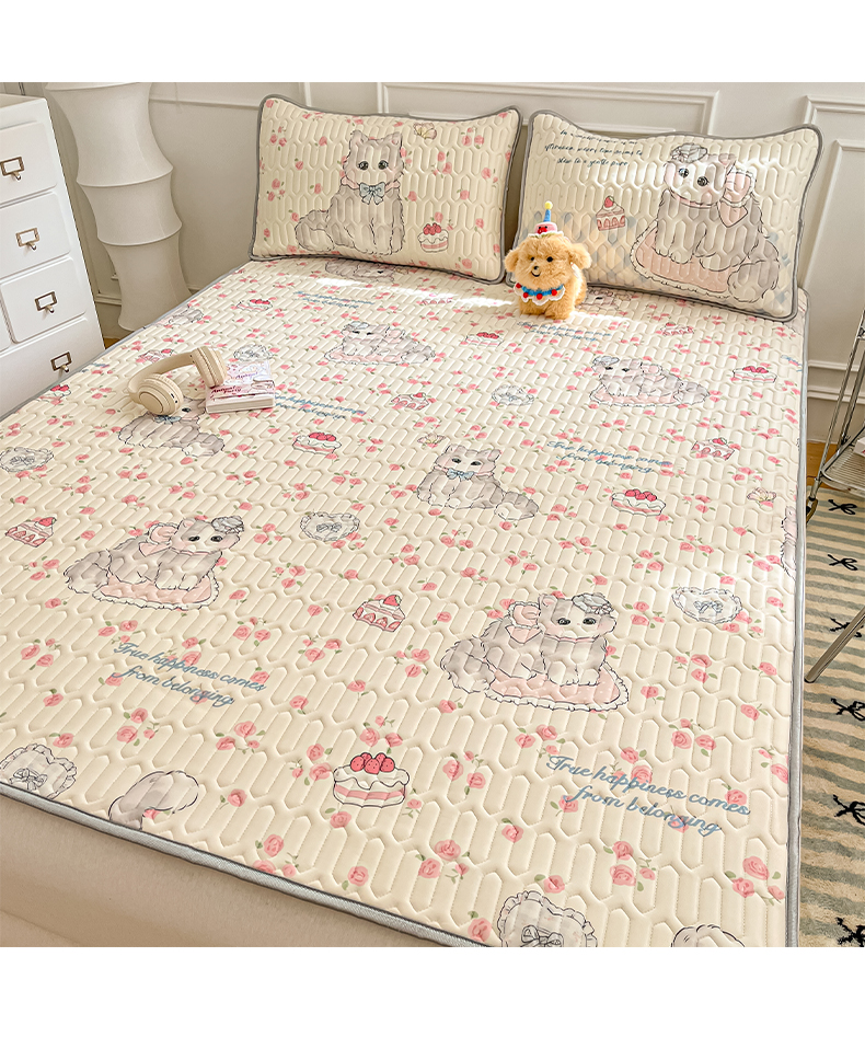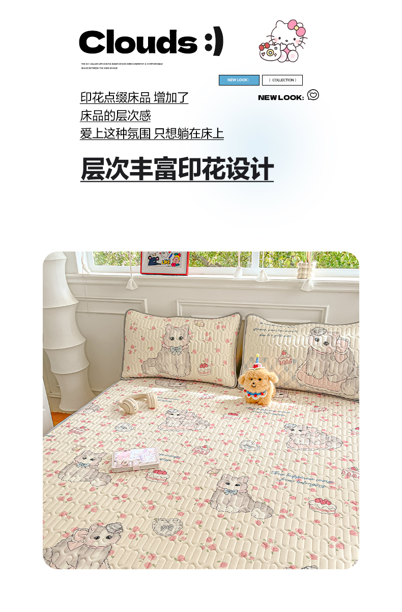 商品名称:摩妮卡 2026新款数码大版小清新乳胶凉席床席款三件套-场景一 优雅甜心猫猫