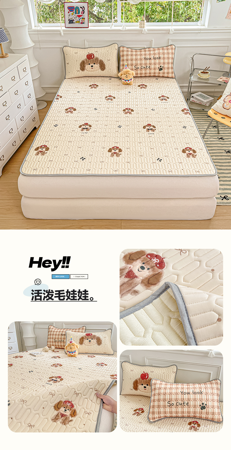 (总)摩妮卡 2026新款水洗棉夹棉防水刺绣爱心床褥床垫款三件套,爱心-奶白,爱心-撑粉,爱心-卡其,爱心-天蓝