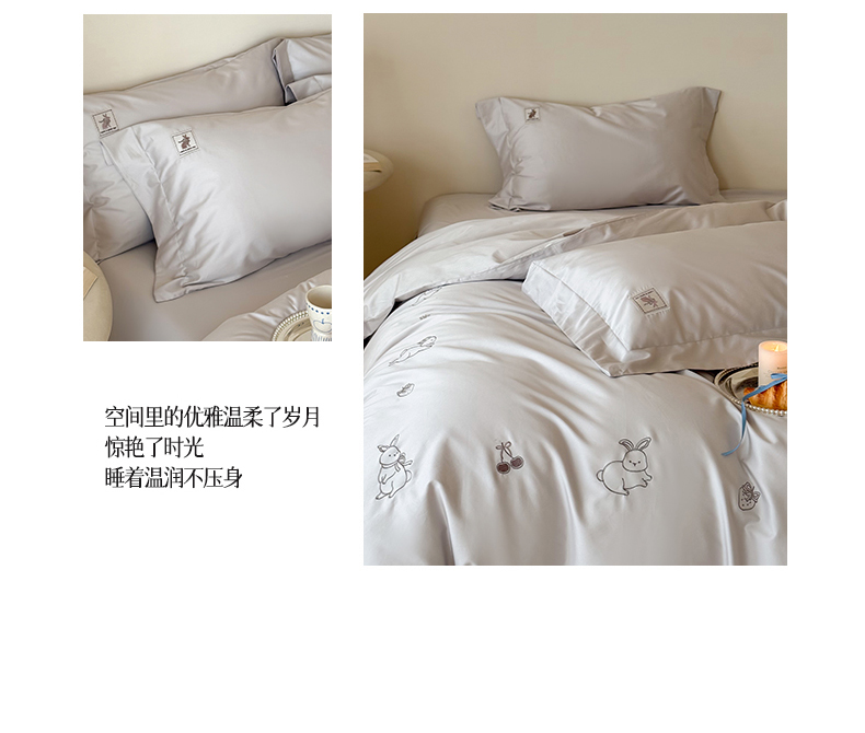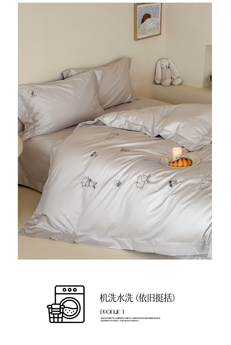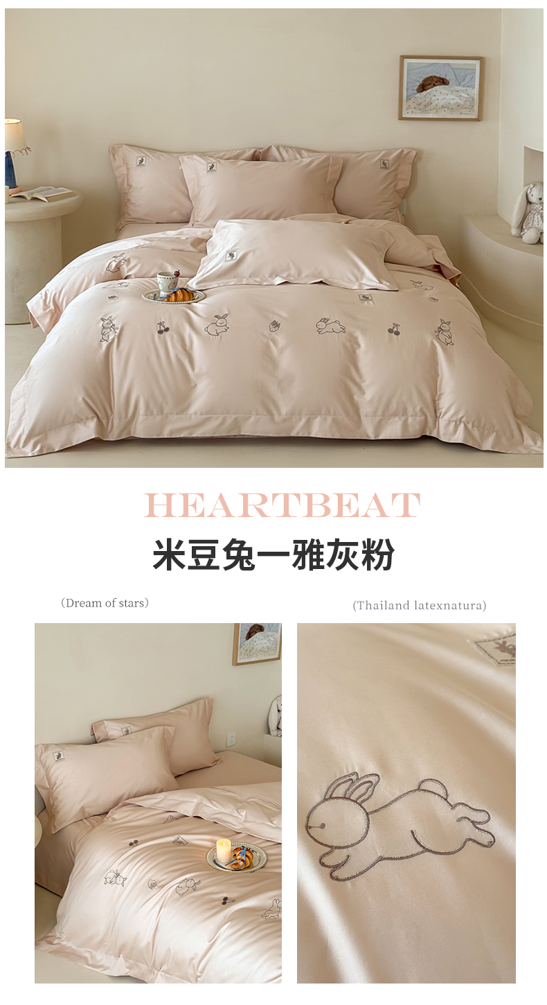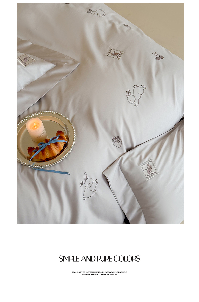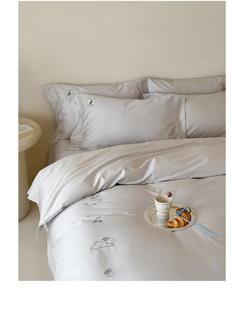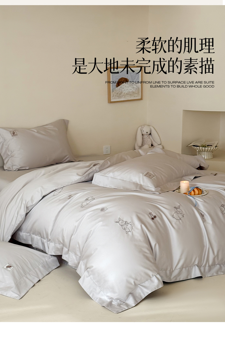 (总)名品优仓 2026新款长绒棉50s全棉纯棉刺绣宽边款四件套-米豆兔