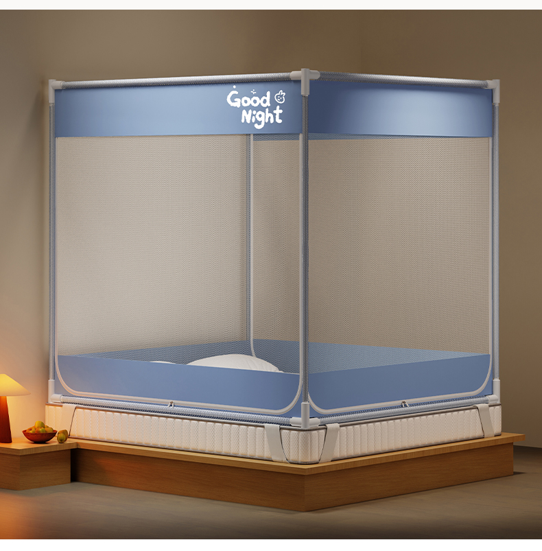 壹和 2026新款坐床蚊帐外穿杆全底-有收纳袋-防摔蚊帐-自连接烤漆支架 蓝-字母