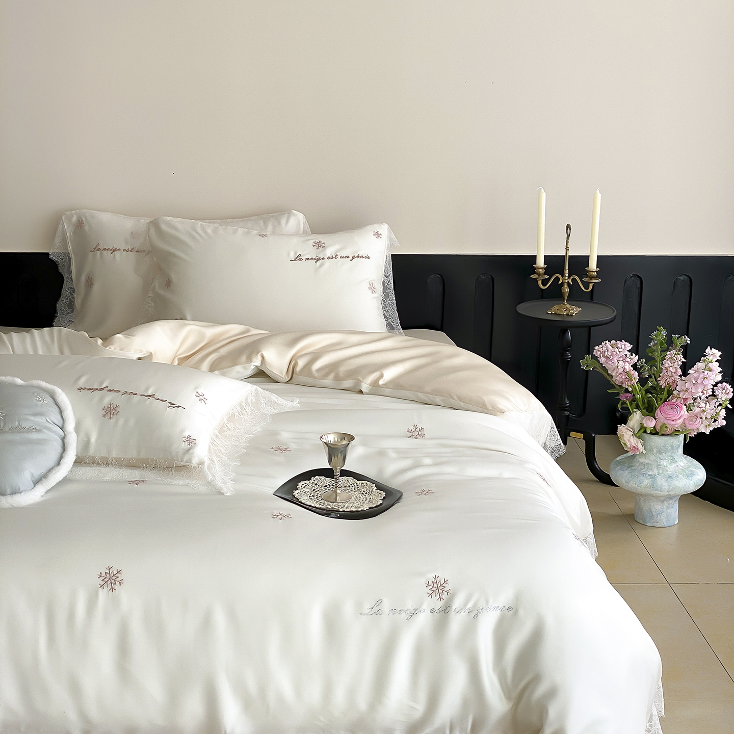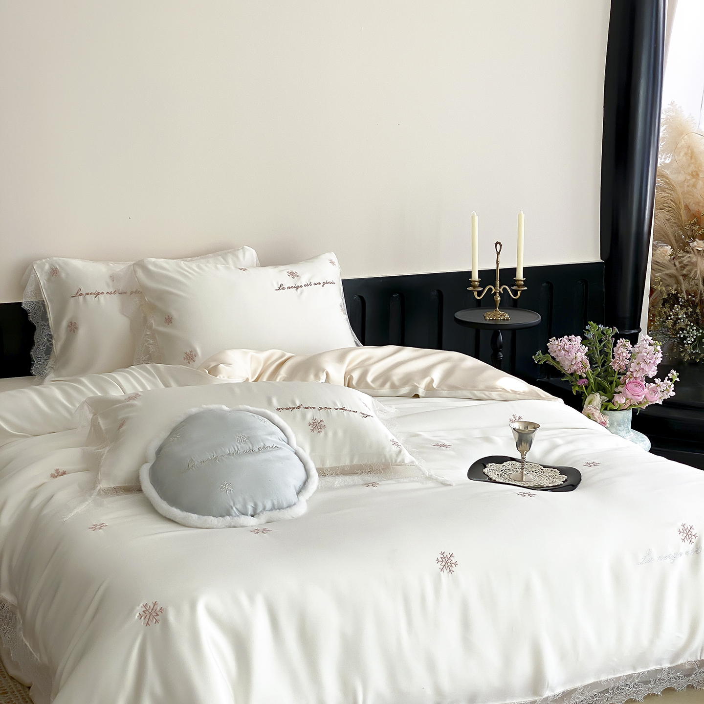初拾 2026新款60s兰精天丝“小雪花”四件套-艾莎公主 艾莎公主-裸粉