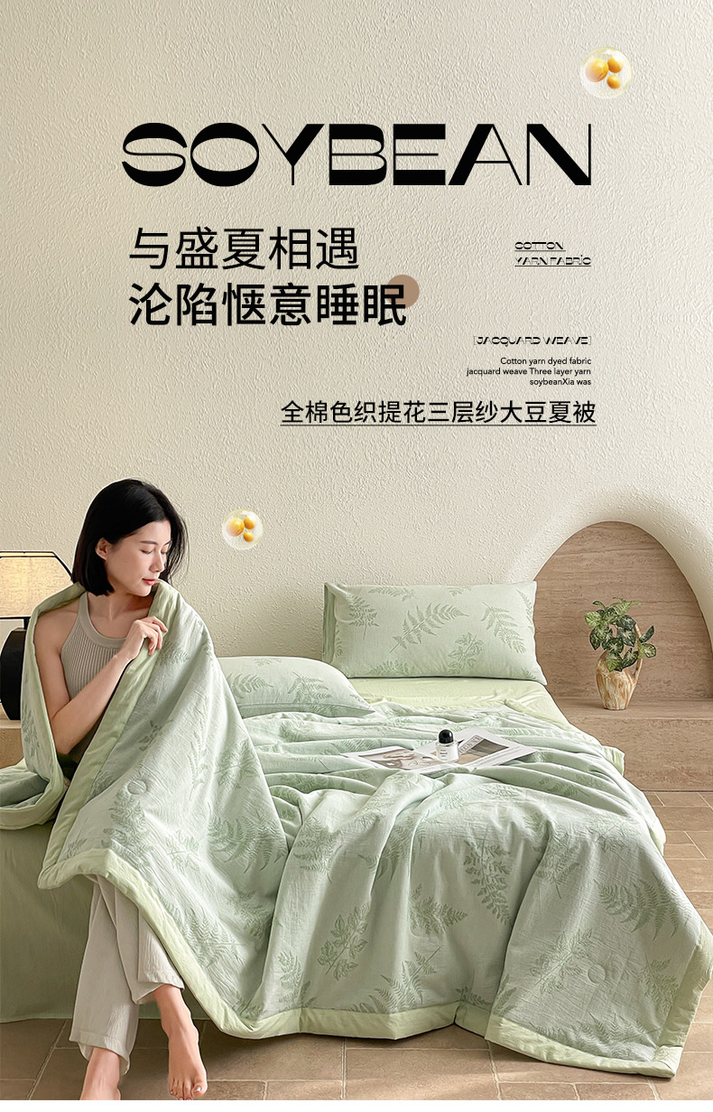 (总)吾秀家居 2026新款全棉色织提花三层纱夏被夏凉被空调被-华美,波点-灰,芳菲-咖,花影-绿,简森-灰,恋恋花开,萌宝,梦幻花园-粉,梦幻花园-灰,太阳花,藤叶-咖,香水繁花-绿