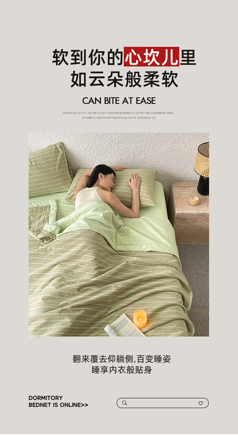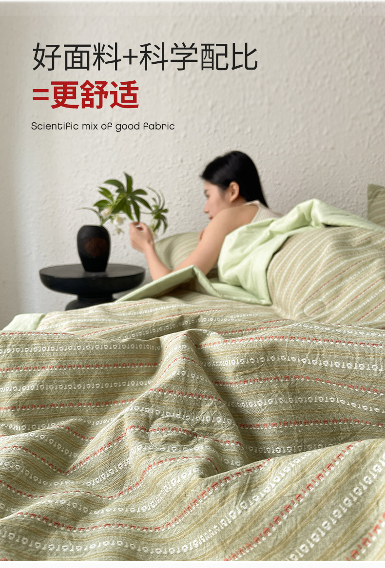 • 91家纺网 家纺一手货源 找家纺 吾秀家居 2026新款棉色织提花水洗棉大豆夏被夏凉被空调被-摩卡 摩卡绿