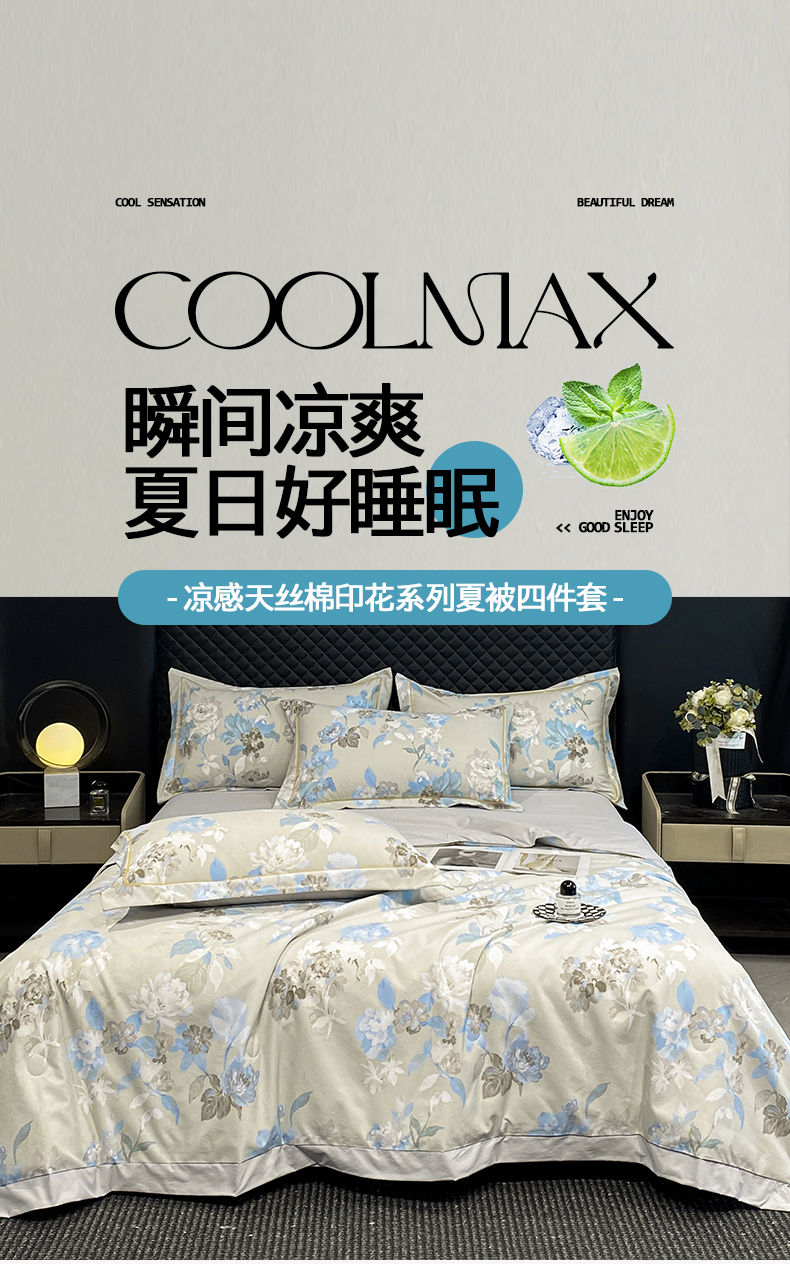 佳品居 2026新款凉感天丝棉印花系列水洗真丝夏被四件套 南齐
