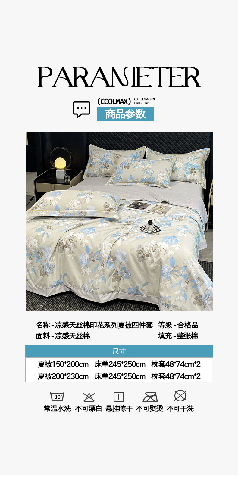 150*200cm四件套(夏被+床单+两只枕套)