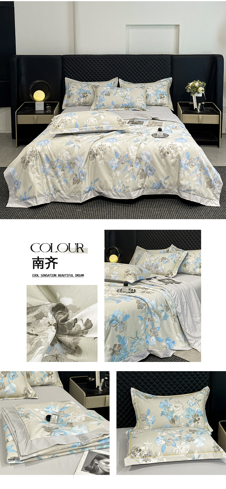 商品名称:佳品居 2026新款凉感天丝棉印花系列水洗真丝夏被四件套 南齐