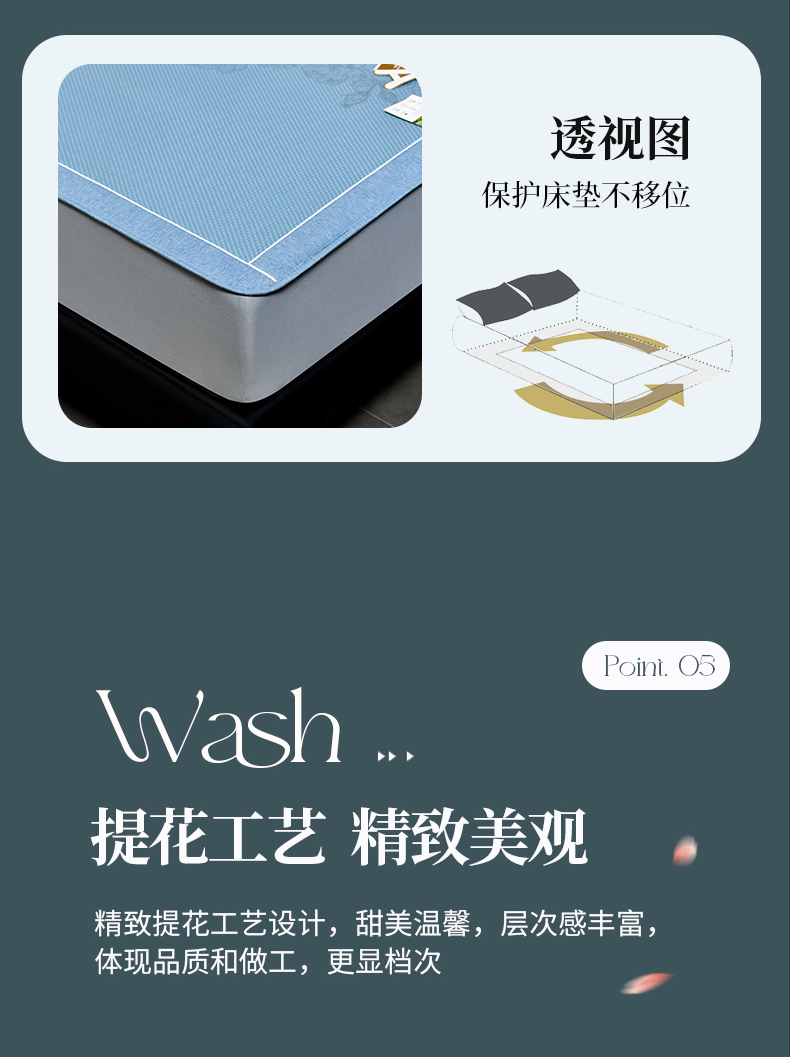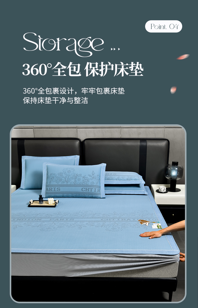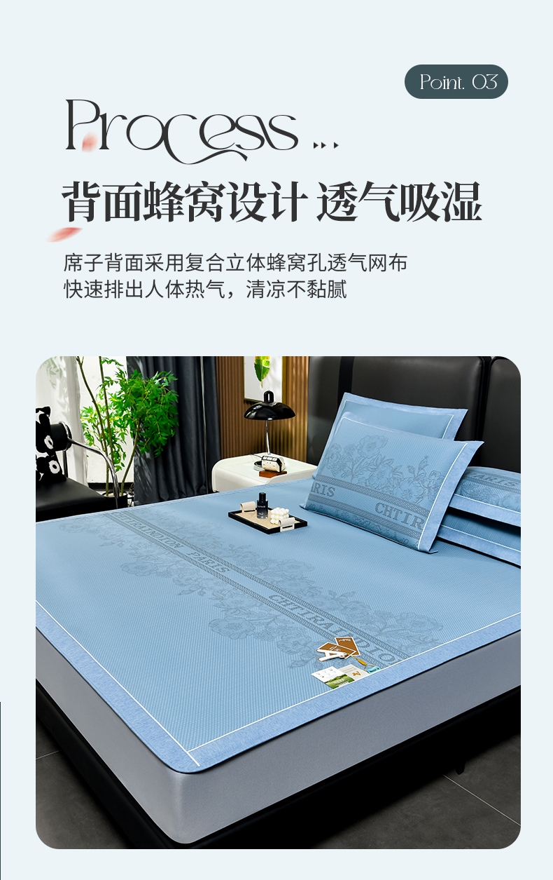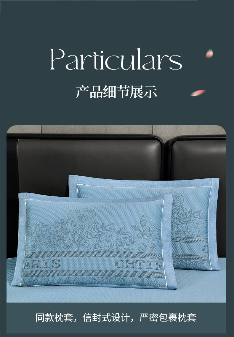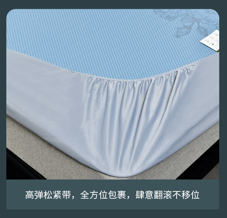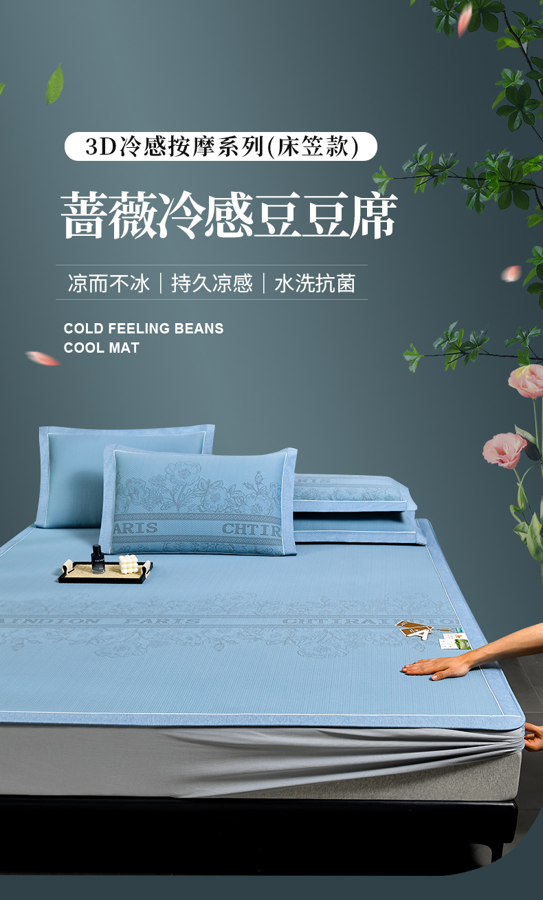 商品名称:小牛席业 2026新款蔷薇冷感豆豆席系列凉席席子-床笠款 蔷薇-蓝色