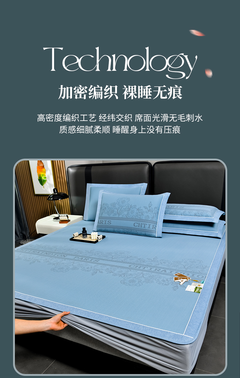 (总)2023新款超精密冰丝席-小斜纹系列-床笠款藤席凉席竹席,粉色,蓝色,绿色,银灰