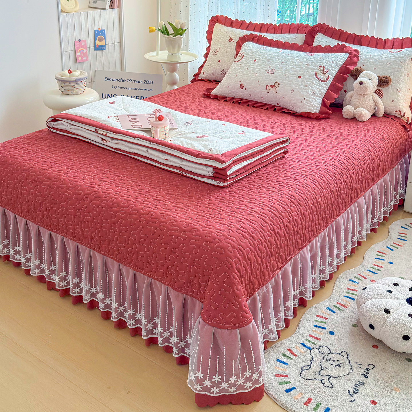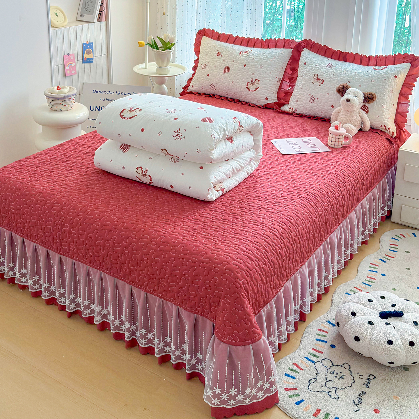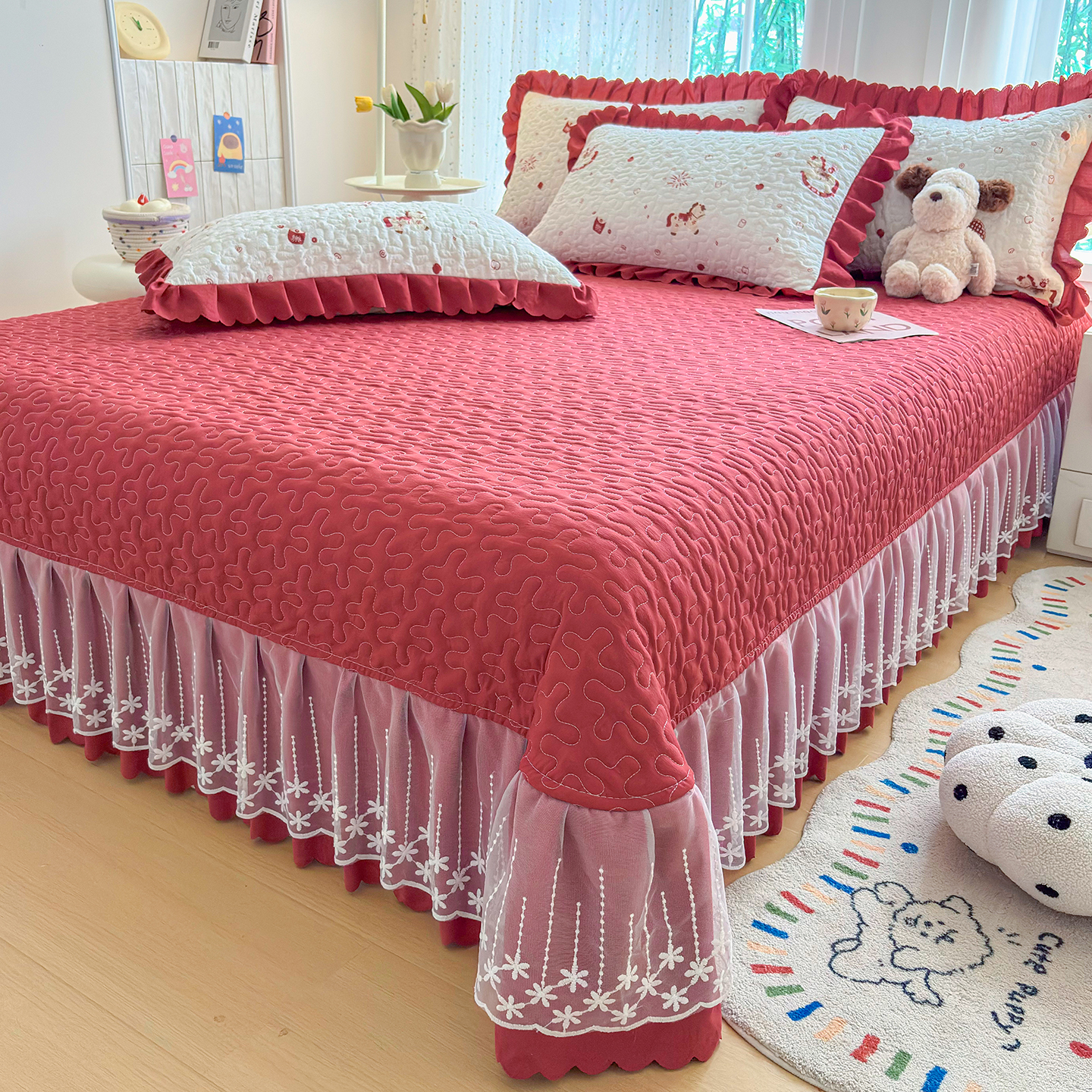 当前位置: 91家纺网 > 商品网购 > 床品套件 > 四件套 > 其它四件套 > 绒耀家纺 2026春夏直播爆款泡芙棉云感双层纱皱皱纱韩式花边床盖四件套 马上有钱