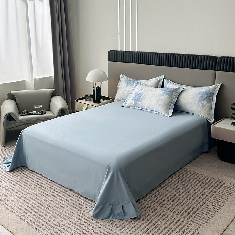 眷恋家纺 2026新款全棉纯棉铂金棉13376纯色荷叶边单床单床笠床单床笠单件 灰绿