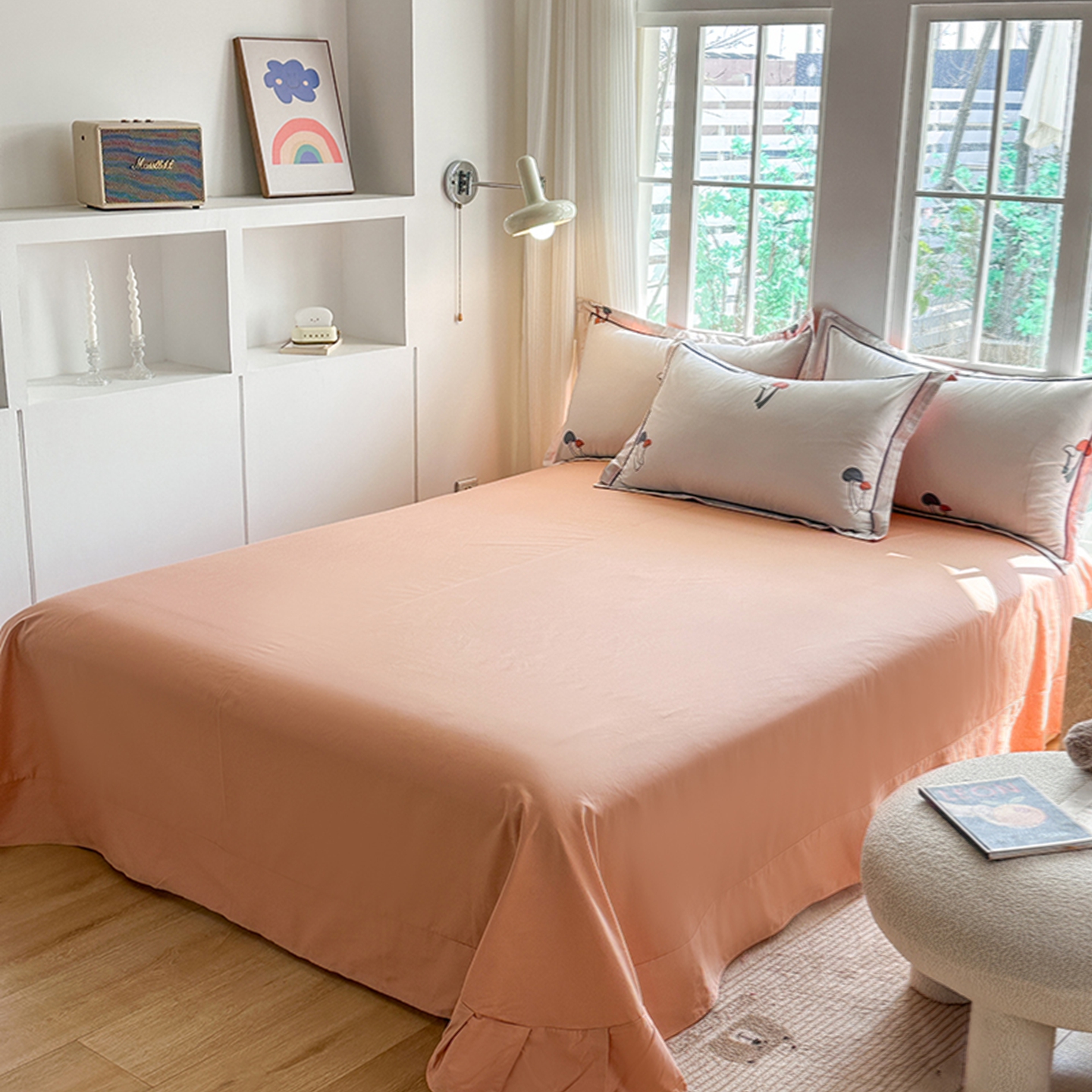 (总)眷恋家纺 2026新款全棉纯棉铂金棉13376纯色荷叶边单床单床笠床单床笠单件,碧水蓝,灰绿,咖,流金粉,南瓜橙,千夏紫,青绿,曲奇黄,森林绿,西瓜粉,优雅紫,郁兰