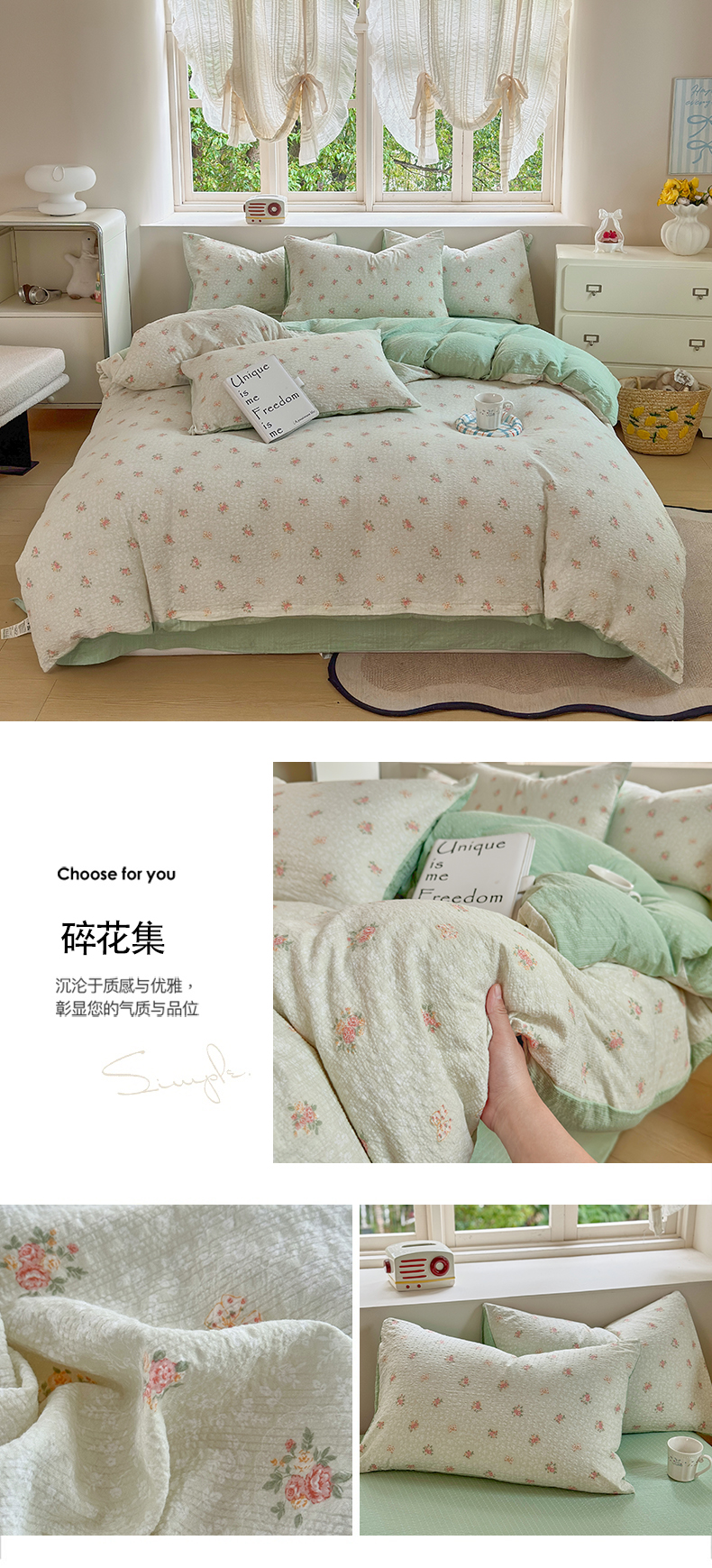 当前位置: 91家纺网 > 商品网购 > 床品套件 > 四件套 > 其它四件套 > 桔禾家纺 2026春夏新款小清新A类超柔泡芙棉泡泡纱双层纱四件套 蝶语