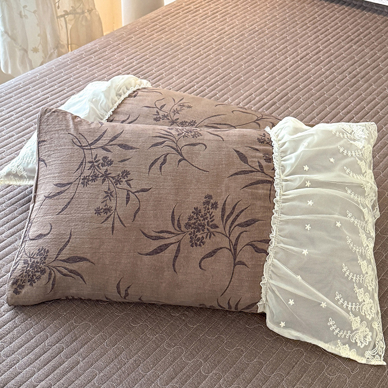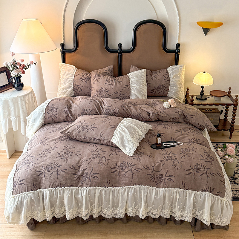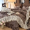 商品名称:漫布云2026春夏新款法式复古双层花边大蕾丝水洗棉亚麻床盖款四件套全棉纯棉印花小碎花四件套 金枝玉叶