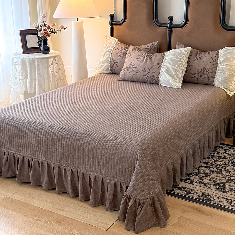 (总)漫布云2026春夏新品韩版公主风超柔水洗棉床盖四件套刺绣针织棉双层纱纯棉棉麻全棉公主风床盖款四件套,芬迪-香雪粉 ,芬迪-可可灰, 芬迪-松露咖 ,芬迪-星云紫