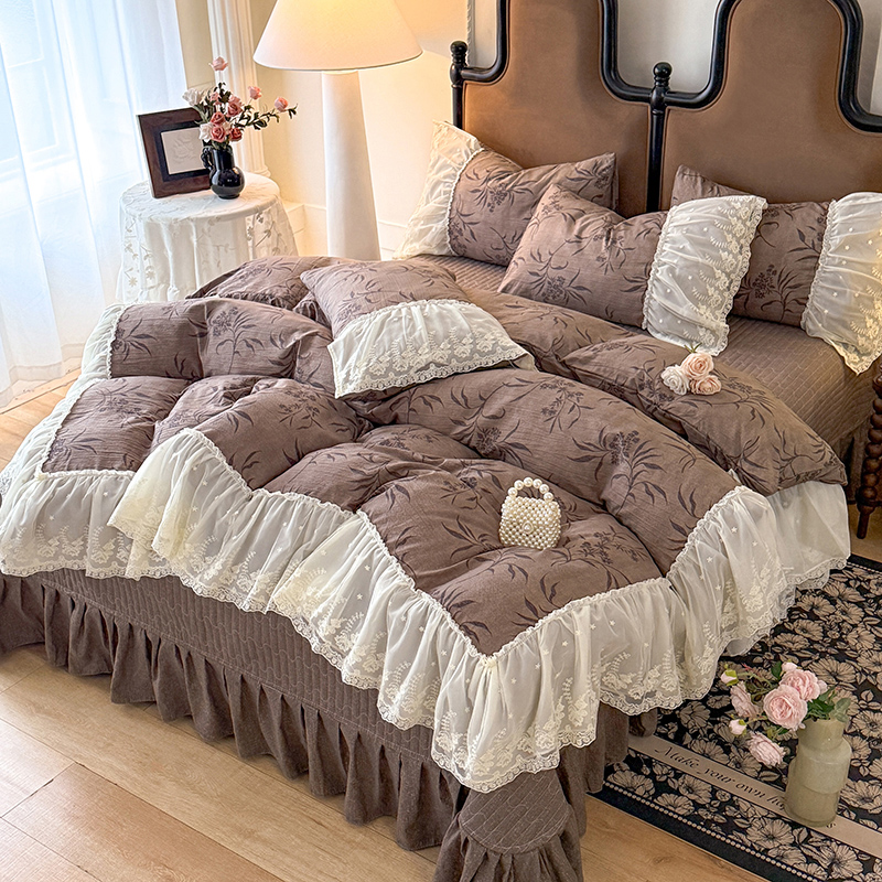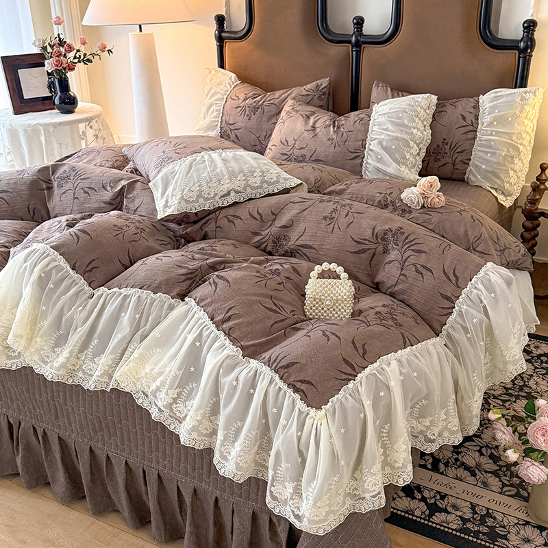 漫布云2026春夏新款法式复古双层花边大蕾丝水洗棉亚麻床盖款四件套全棉纯棉印花小碎花四件套 金枝玉叶