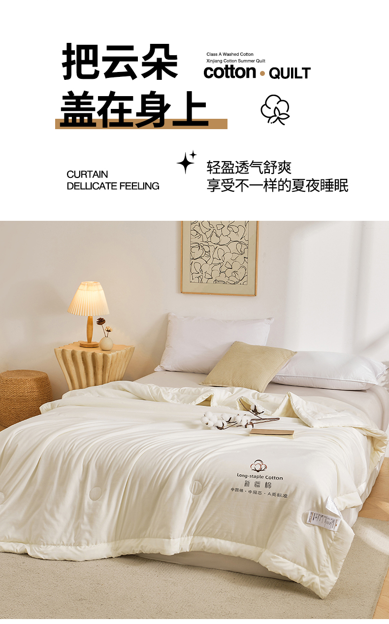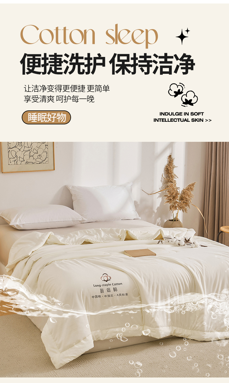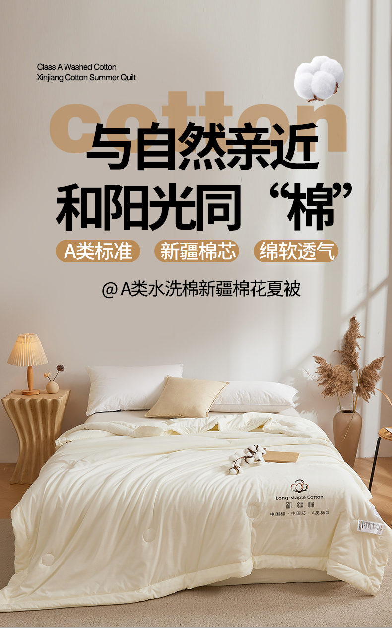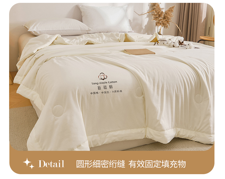 商品名称:初相识被业 2026春夏新款A类水洗棉纯色双拼新疆棉花被夏被夏凉被空调被 新疆棉云朵白