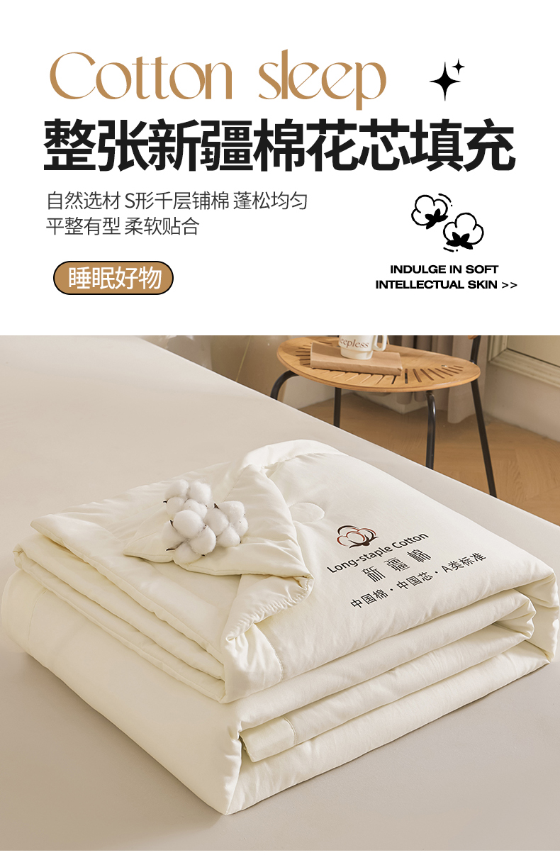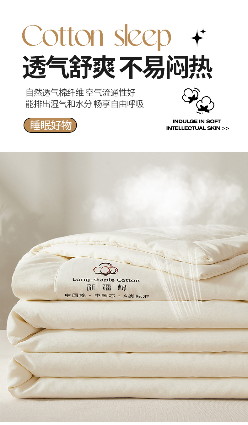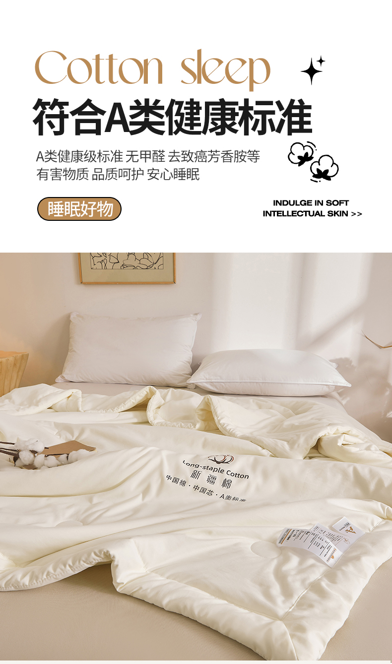 商品名称:初相识被业 2026春夏新款A类水洗棉纯色双拼新疆棉花被夏被夏凉被空调被 新疆棉云朵白