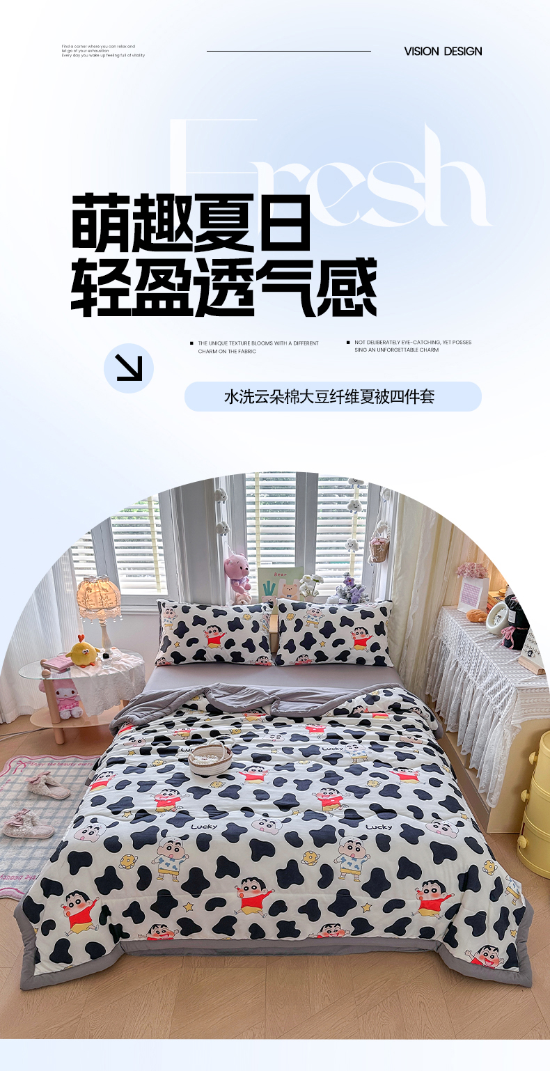 • 91家纺网 家纺一手货源 找家纺 优卡迪家纺馆 2026新款水洗云朵棉夏被四件套下载文件包含买家秀 淘气小新