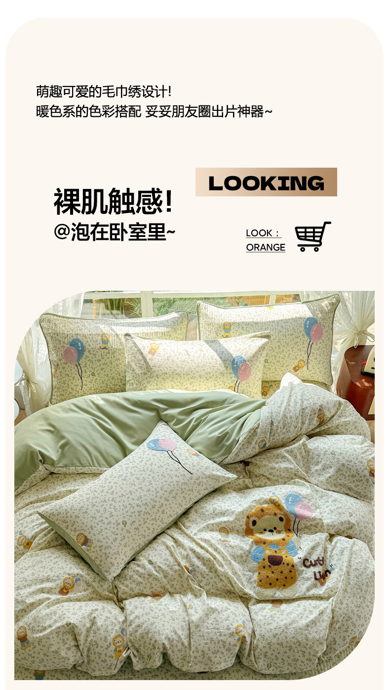 (总)恋佳居 2026新款毛巾绣古法棉床笠床盖四件套,粉豹甜猫,格趣萌熊,花狮轻梦,花兔小叙,花野遇美,蓝酷豹猫,迷雾紫兔,软萌时光