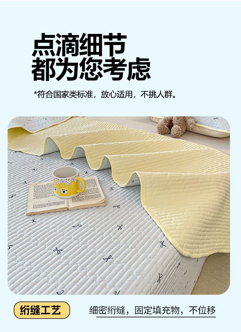 (总)老帅的工厂店 2025新款夹棉纯色防水床垫,净白,浅灰,深灰,雾蓝,虾粉,杏色,本色,灰蓝