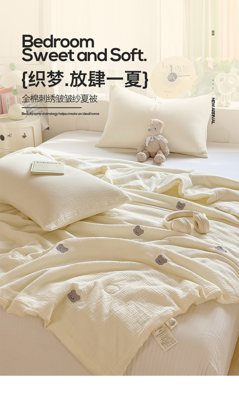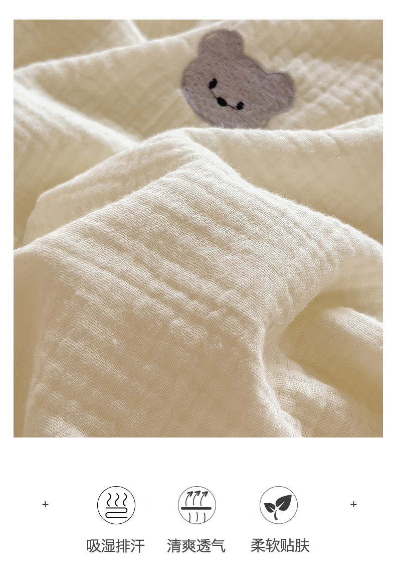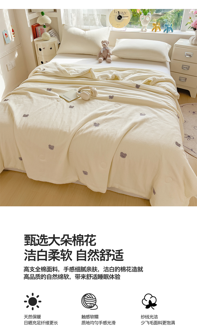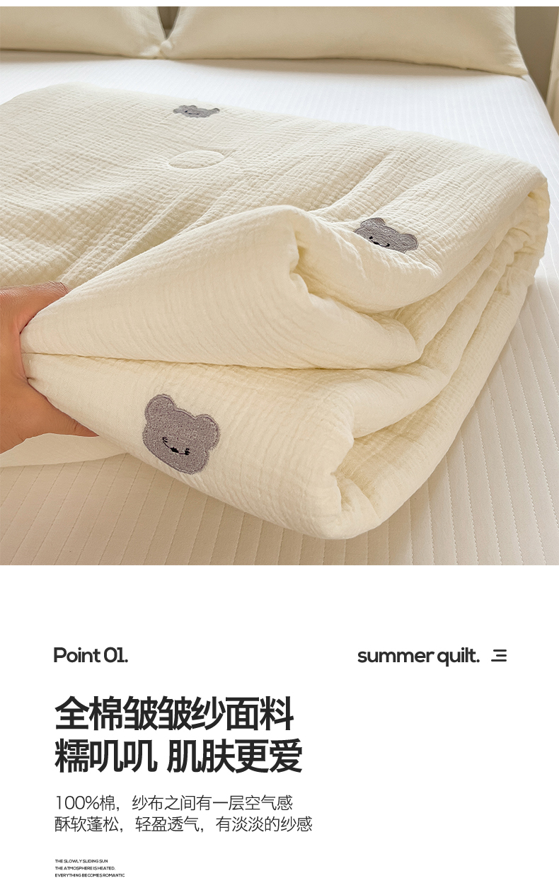商品名称:布凡家居 2026春夏新款全棉刺绣皱皱纱夏被夏凉被空调被 萌萌小熊