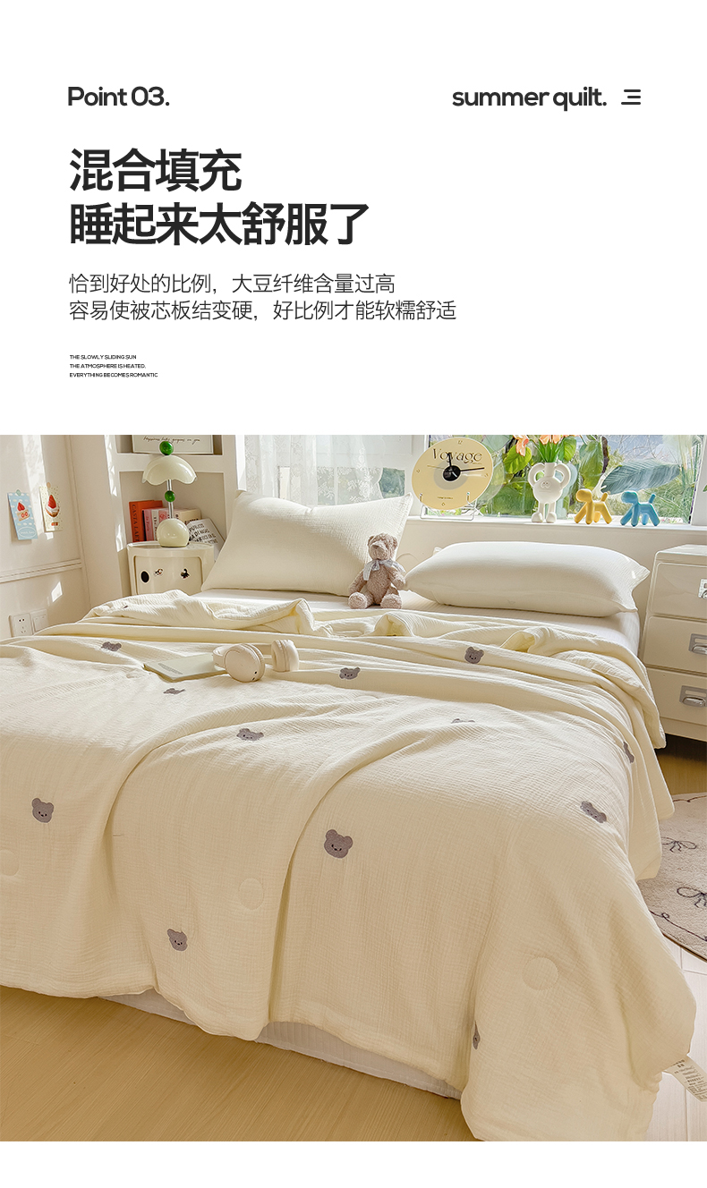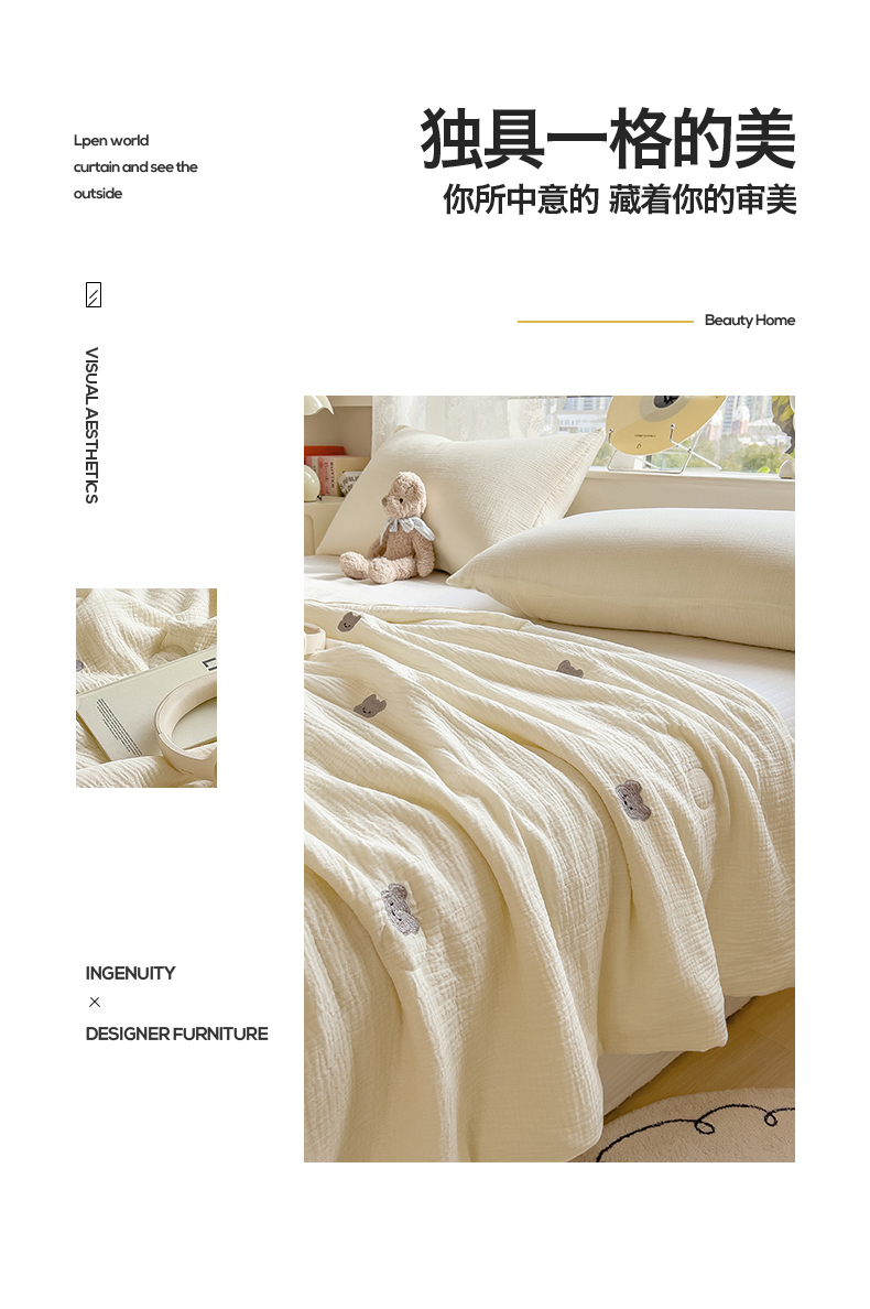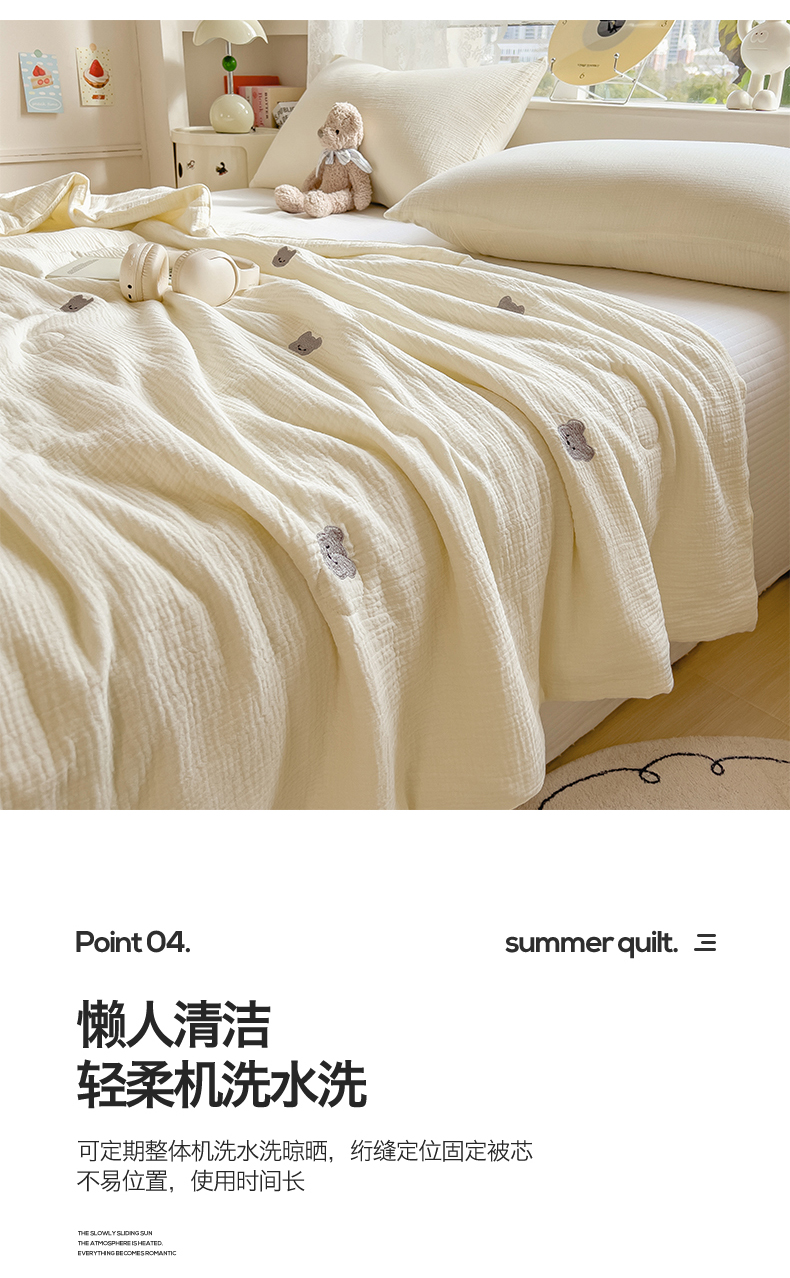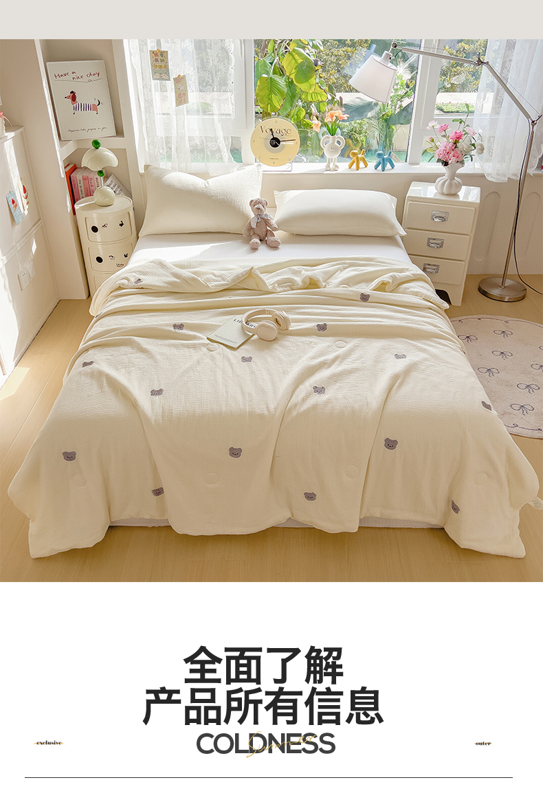 商品名称:布凡家居 2026春夏新款全棉刺绣皱皱纱夏被夏凉被空调被 萌萌小熊