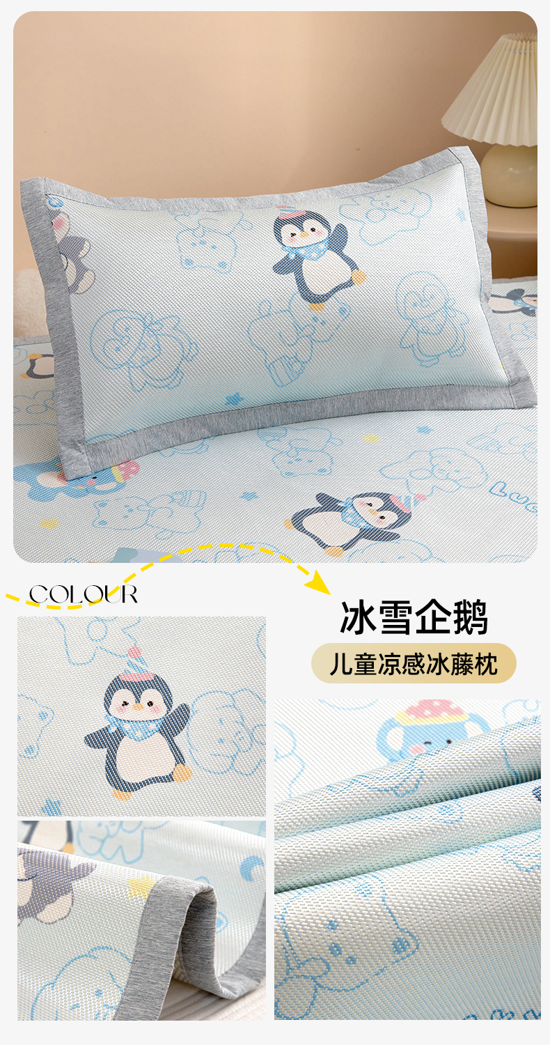 商品名称:鱼宝 2026新款儿童凉感冰藤枕套冰丝枕头枕芯 疯狂小动物