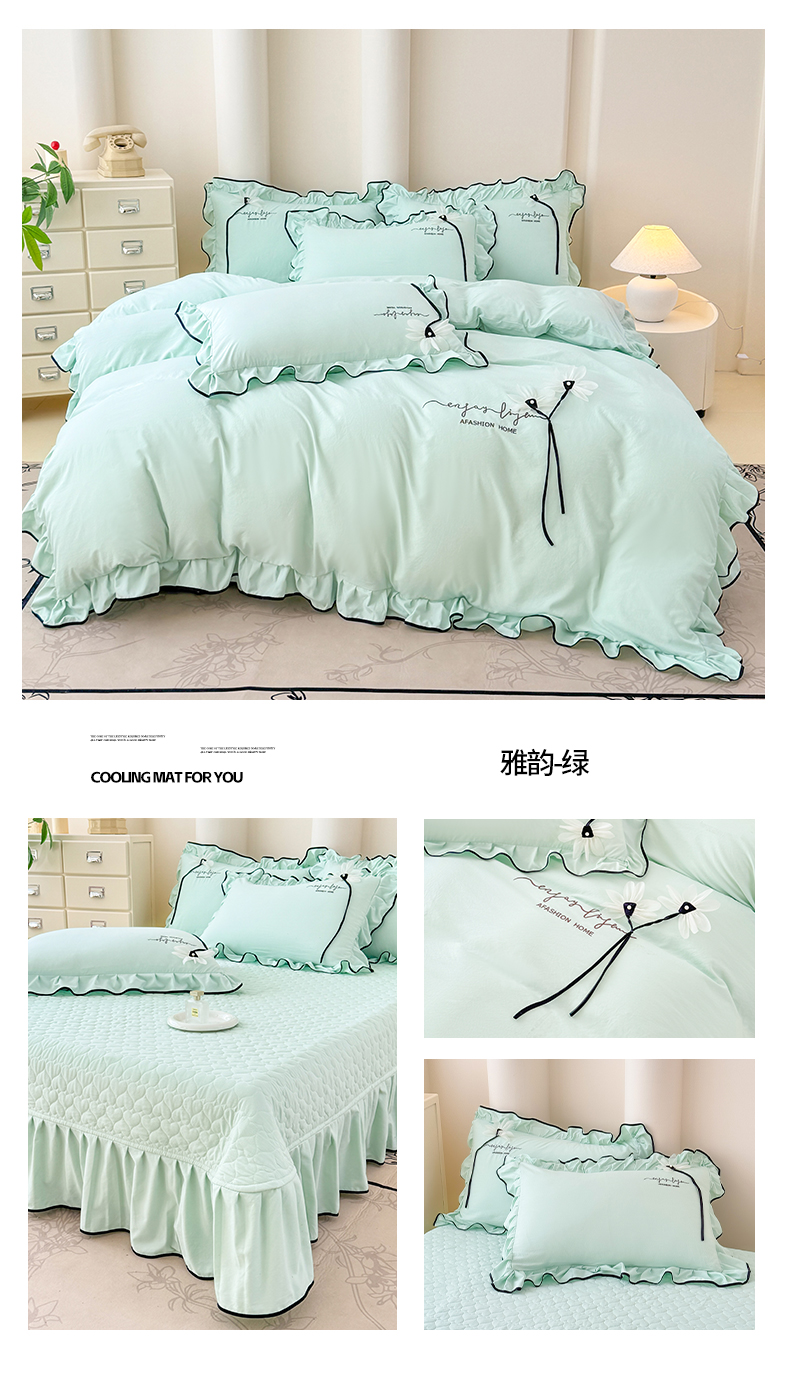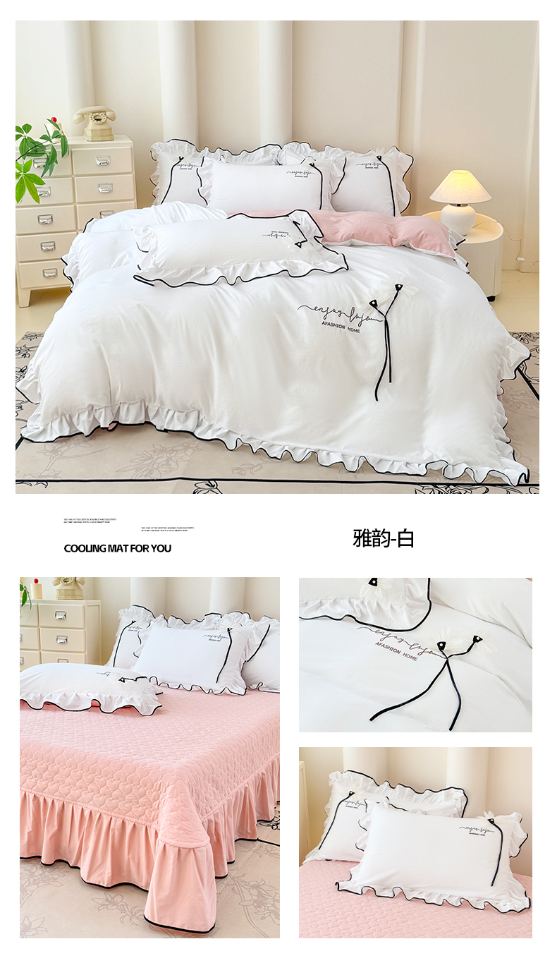 莉迪娅 2026新款A类糯小棉刺绣花边四件套-雅韵系列 雅韵-粉