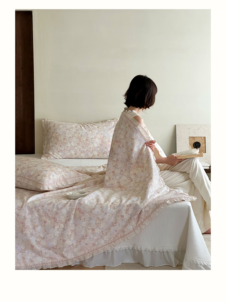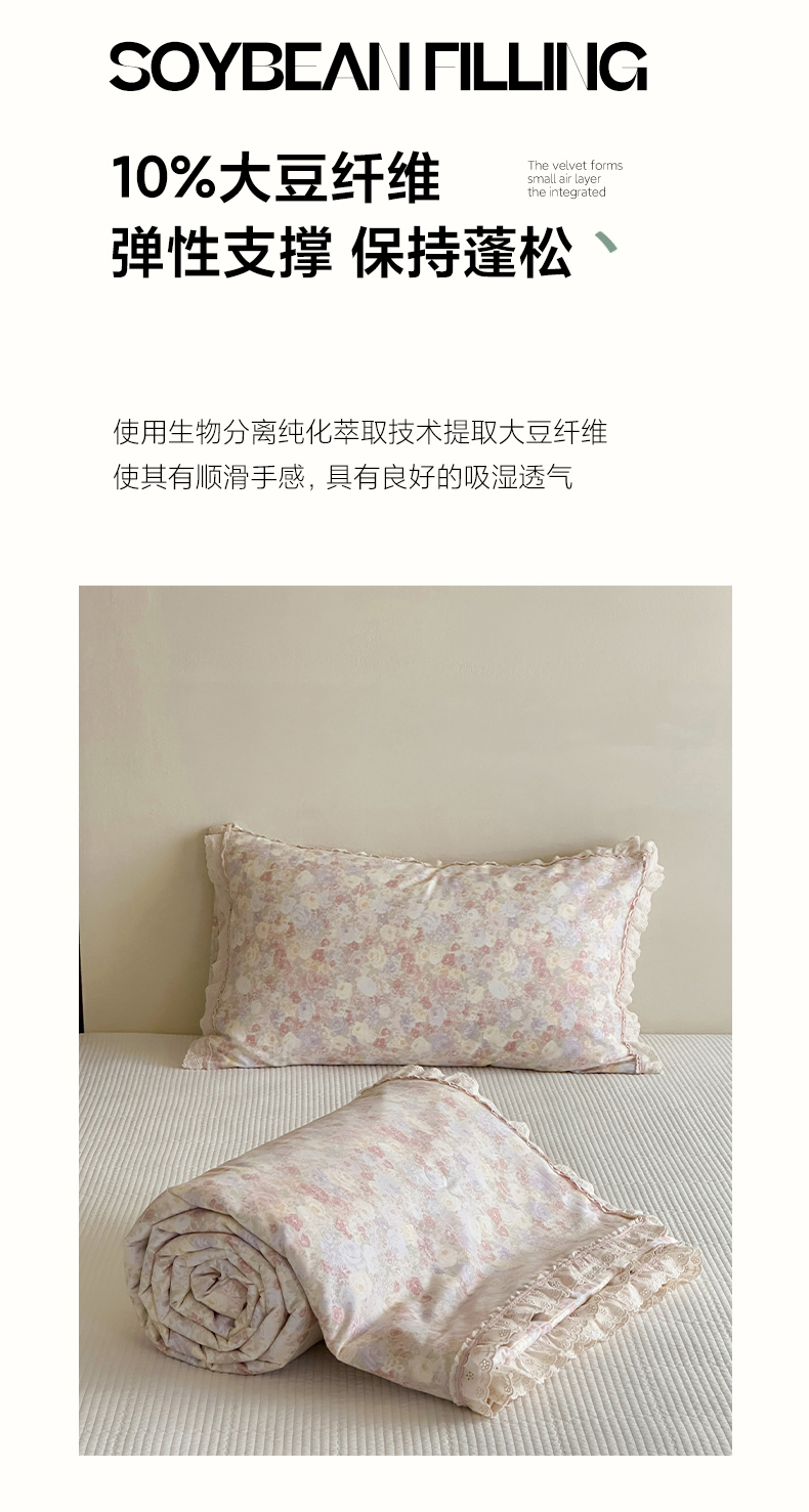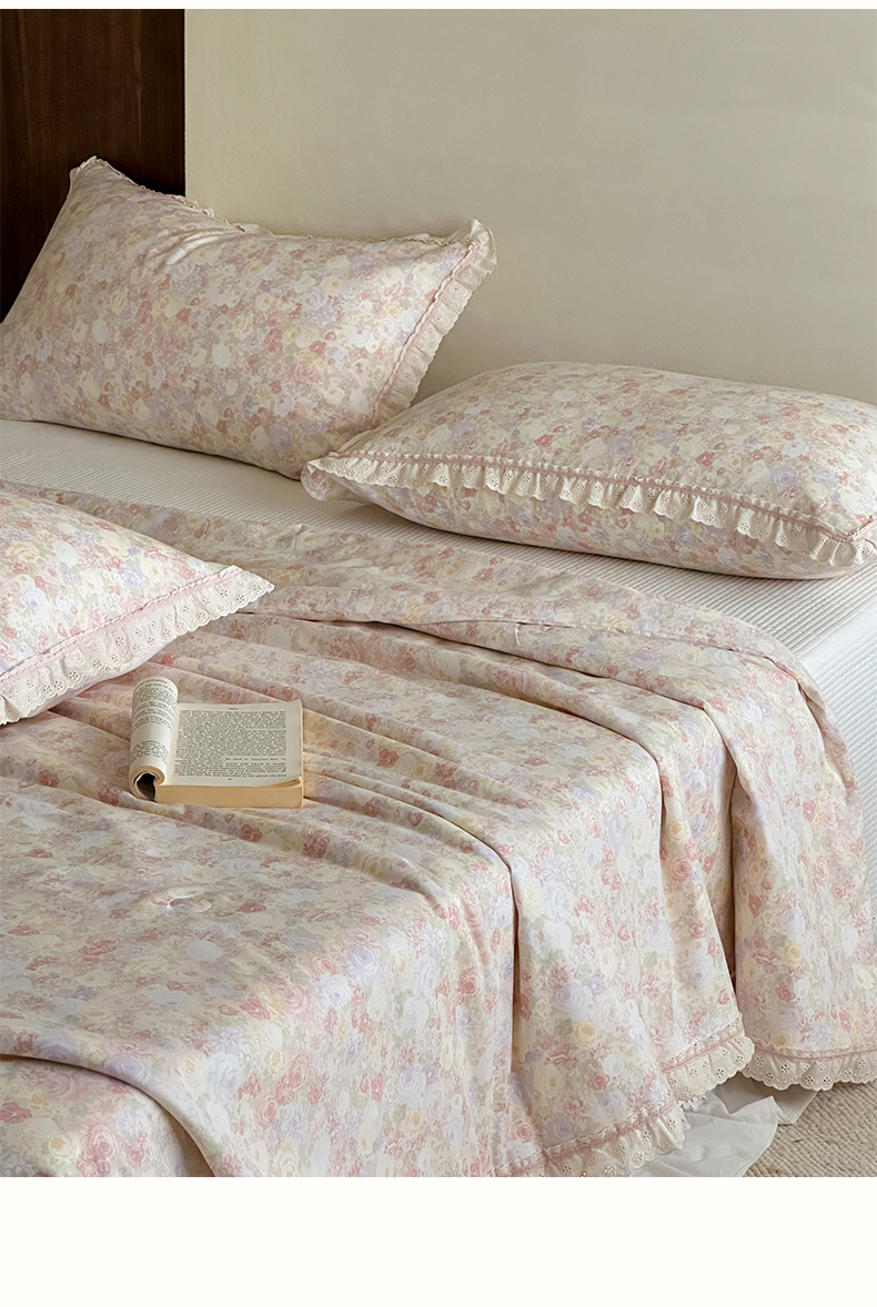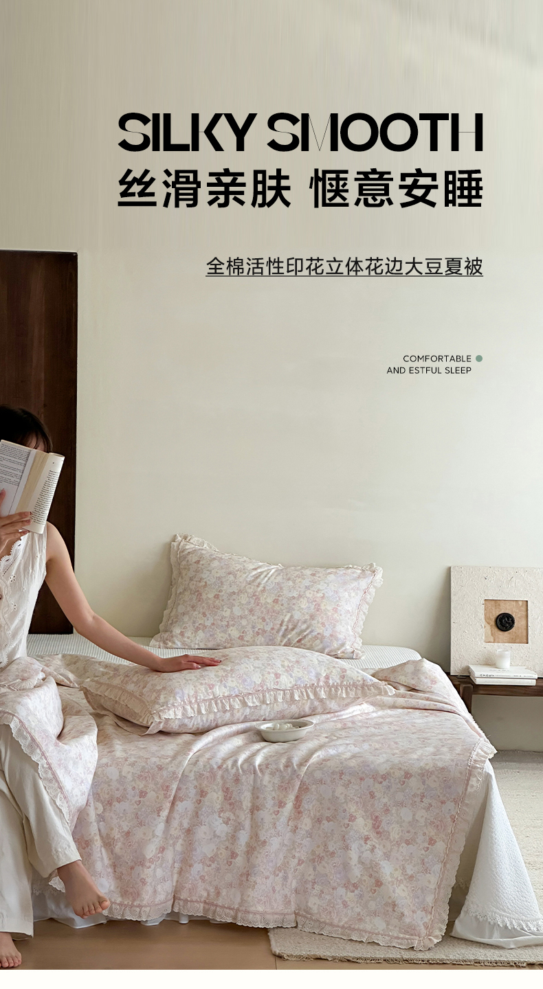 商品名称:一加一 2026新款全棉活性印花立体花边大豆夏被夏凉被空调被四件套 蔷薇凝