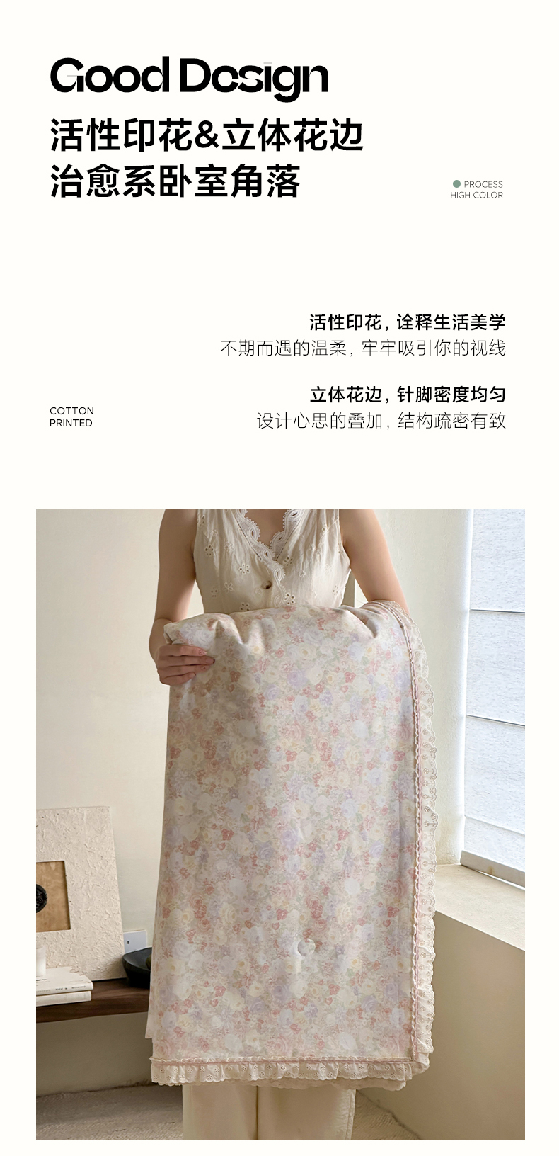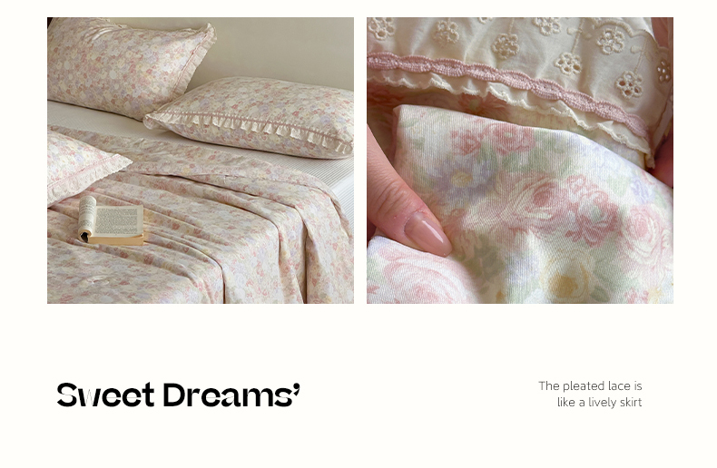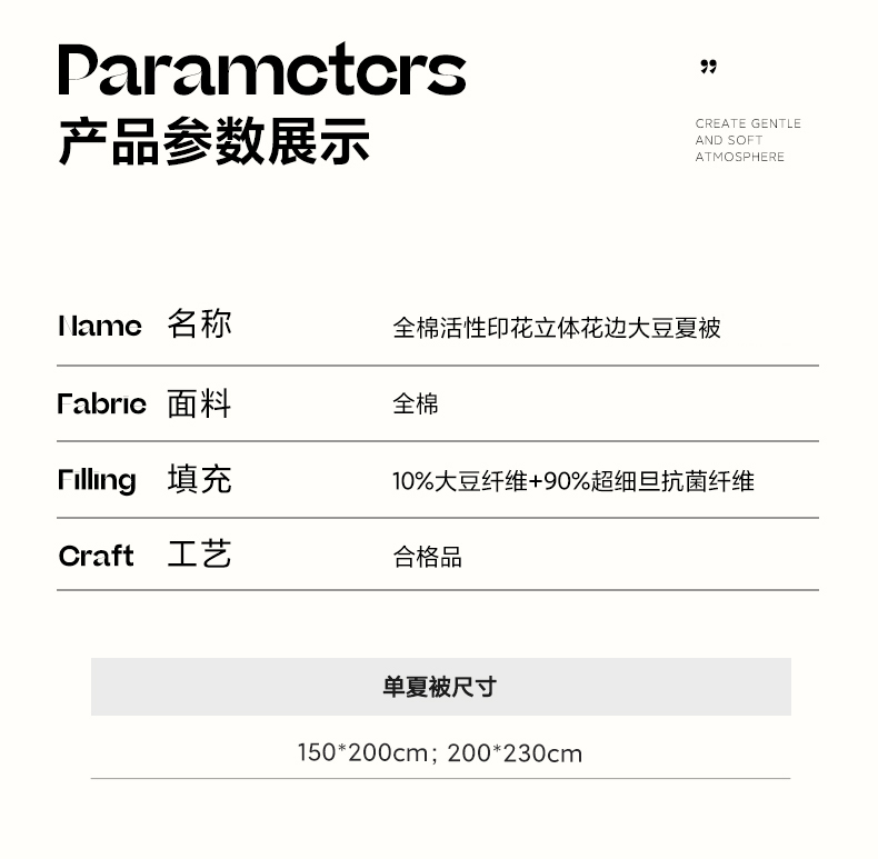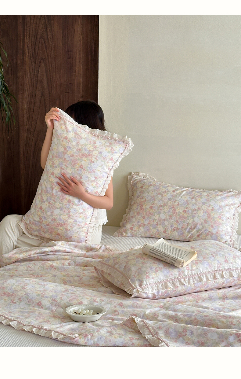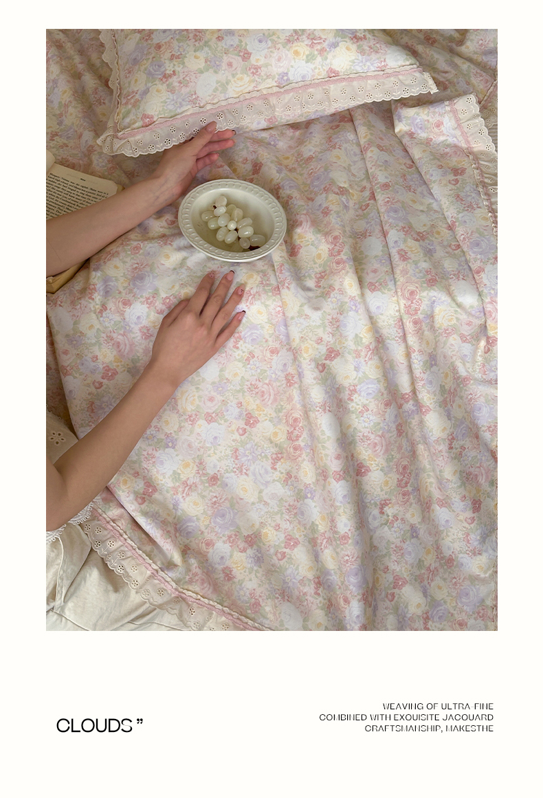 商品名称:一加一 2026新款全棉活性印花立体花边大豆夏被夏凉被空调被四件套 蔷薇凝