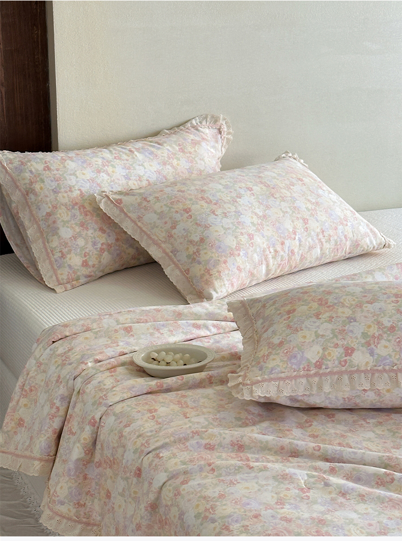 一加一 2026新款全棉活性印花立体花边大豆夏被夏凉被空调被四件套 蔷薇凝
