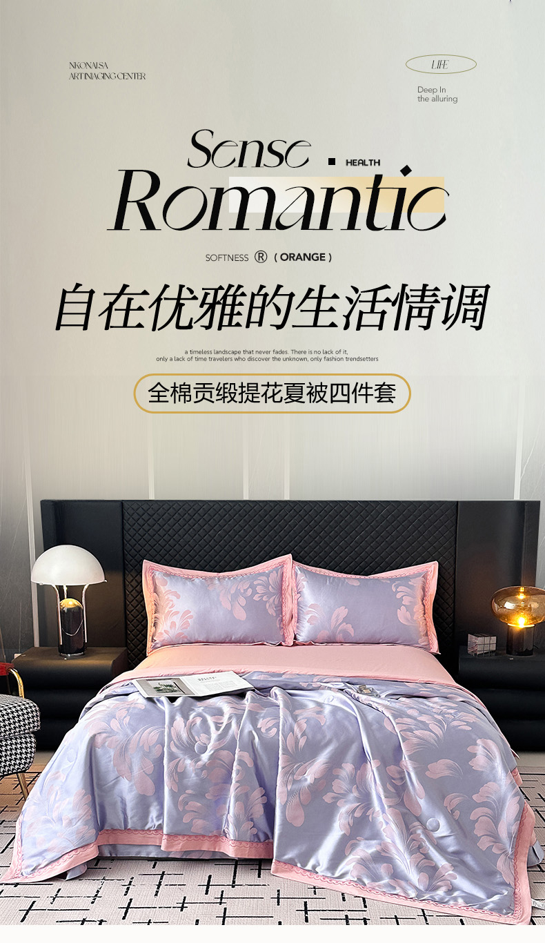 莉迪娅 2026新款全棉纯棉贡缎提花夏被夏凉被空调被四件套 相伴一生白