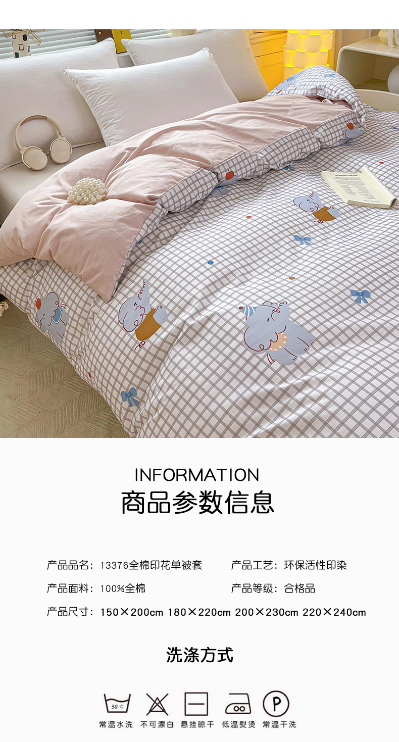 • 91家纺网 家纺一手货源 找家纺 大柏树 2026新款全棉纯棉13376印花单被套单品被套被套单件 活力小象