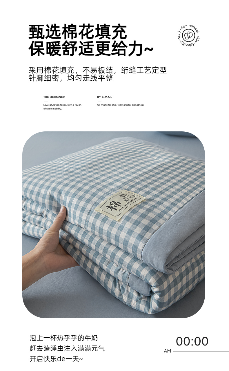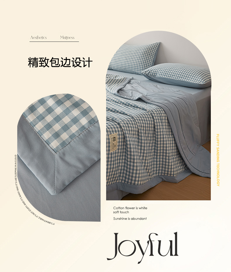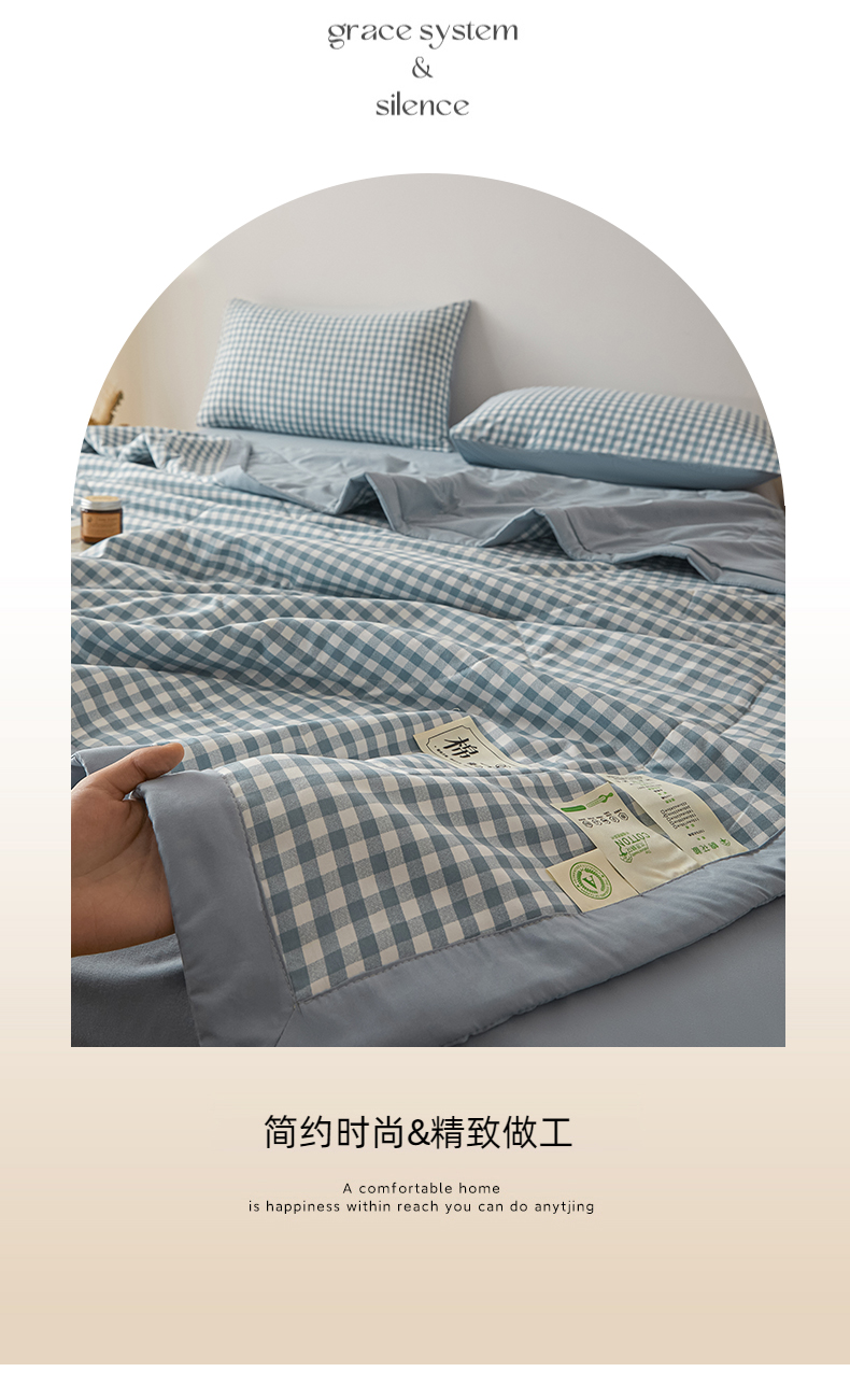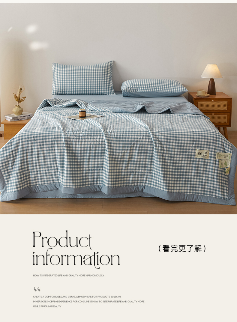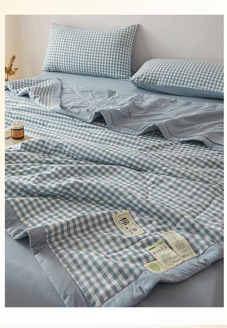 (总)寐眠 2023新款全棉色织水洗棉儿童夏被,粉大格,粉小格,灰白格,蓝大格,蓝小格,雾蓝格,小粉格