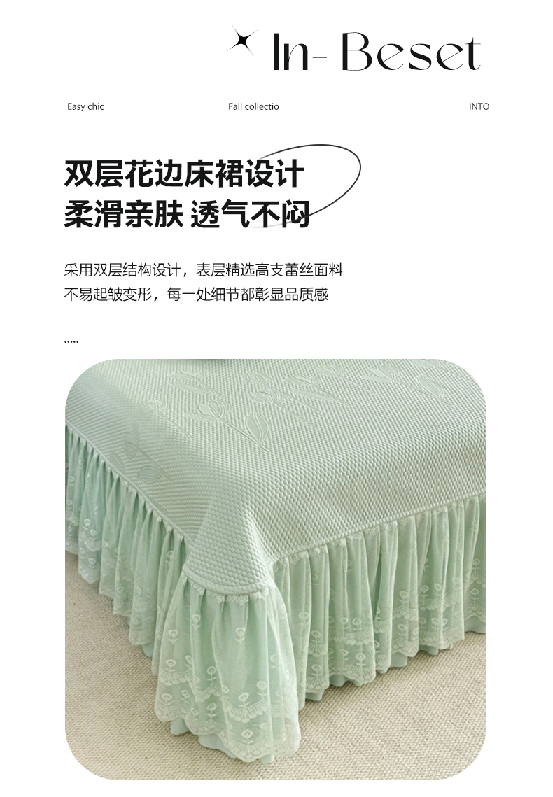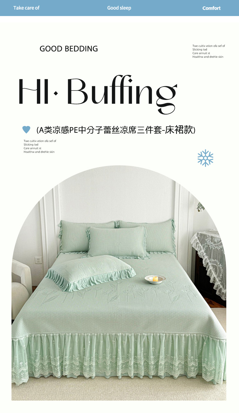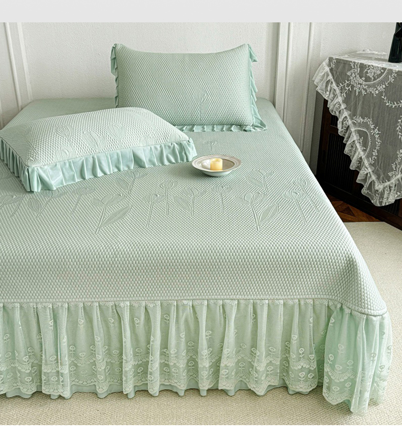 (总)金绣美居 2026新款PE高分子凉感席冰感床裙款三件套-安然影 (控价不低于199元),安然影-豆沙粉,安然影-蓝色,安然影-清水绿,安然影-紫色