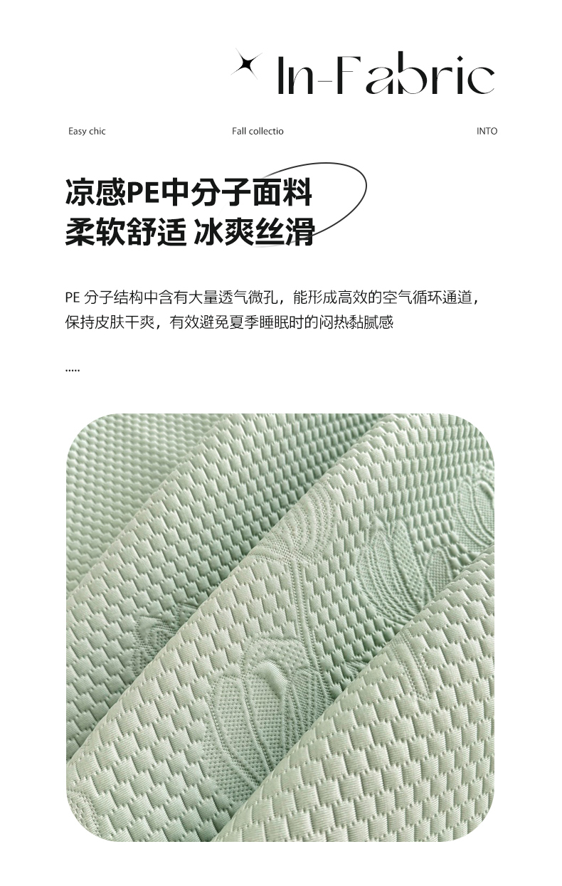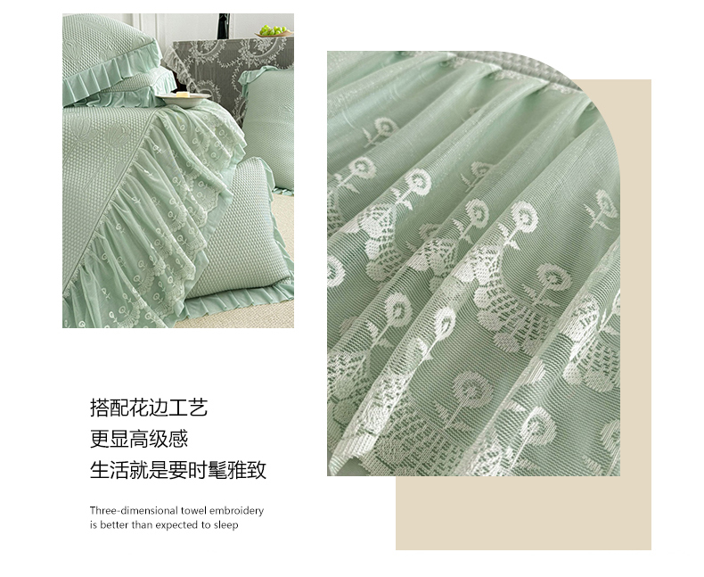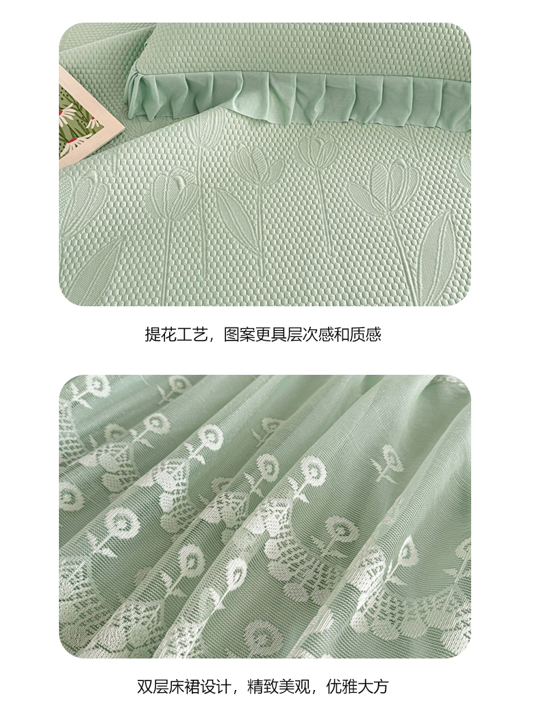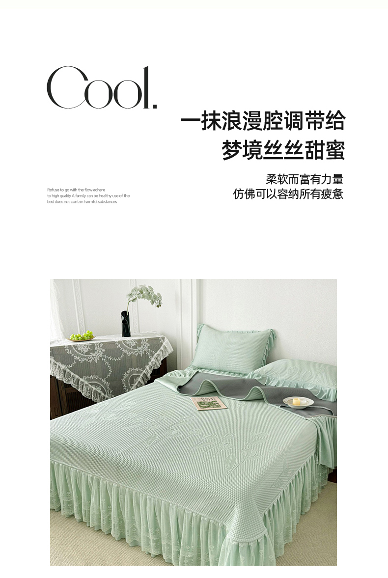 商品名称:金绣美居 2026新款PE高分子凉感席聚乙烯冰感床裙款凉席三件套-七里香 七里香-绿色