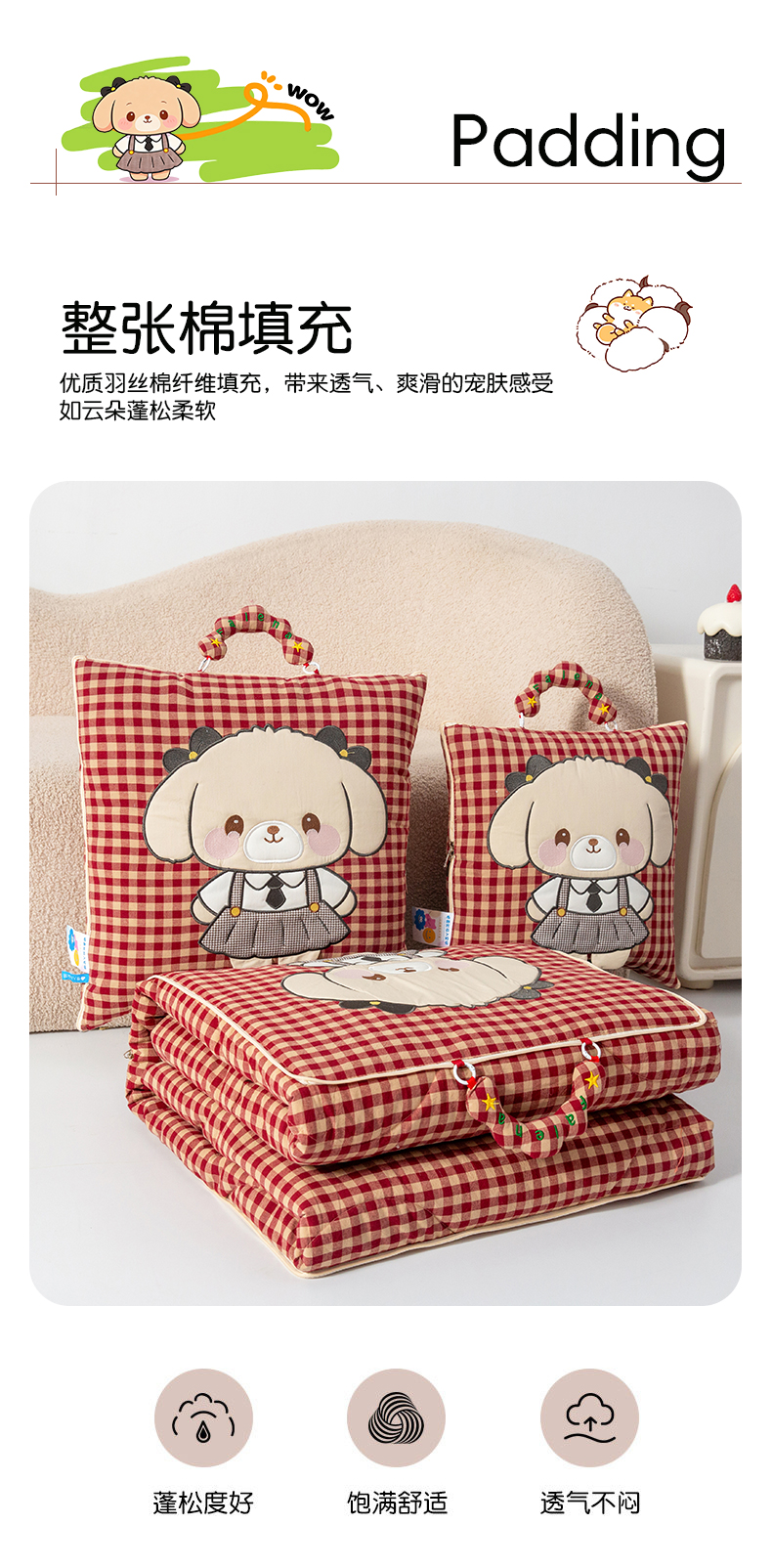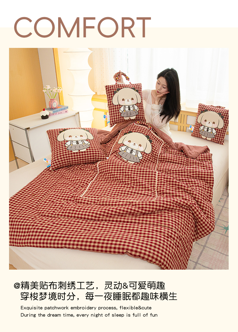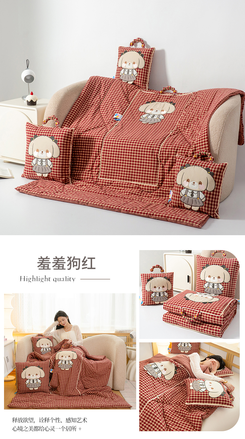 商品名称:(总)雷娜家居 2026新款全棉纯棉色织羞羞狗抱枕被
