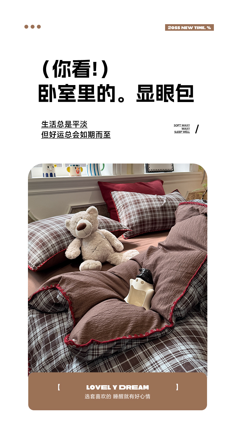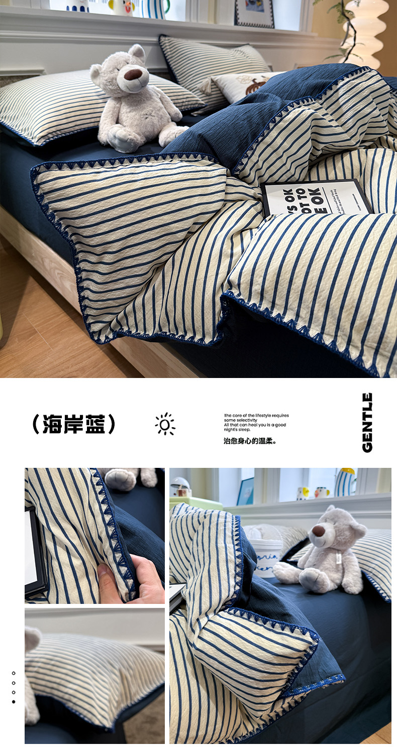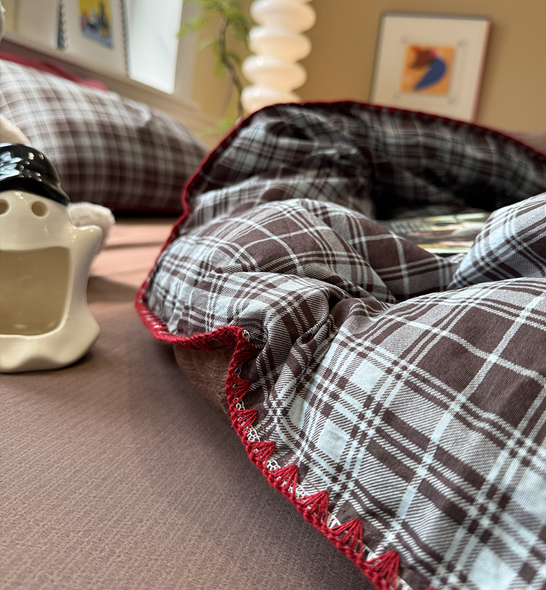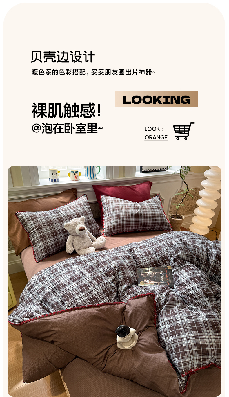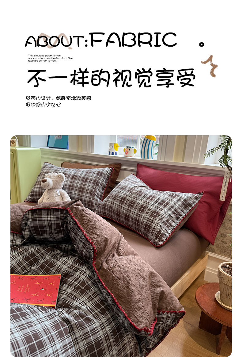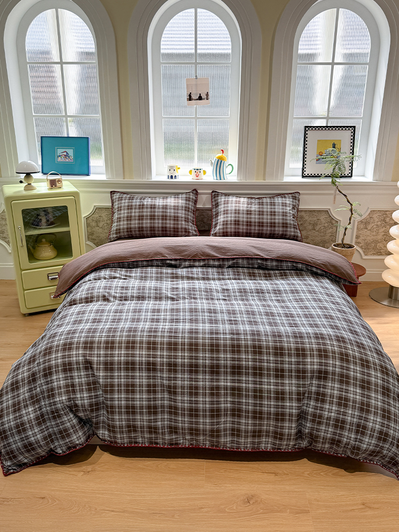 当前位置: 91家纺网 > 商品网购 > 床品套件 > 四件套 > 化纤普通四件套 > 水墨江南 2026新款条格系列贝壳边三角针四件套 布朗尼咖