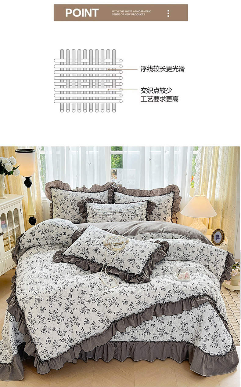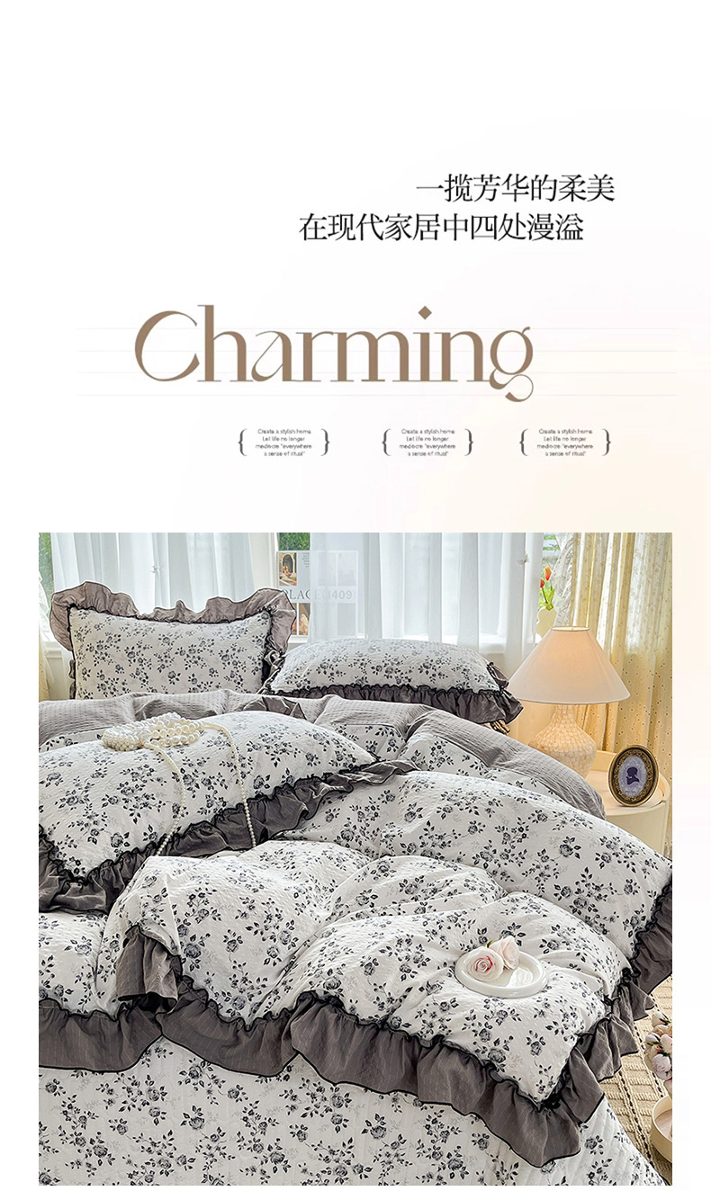 妮恒美 2026新款法式床盖款四件套 幽幽花香