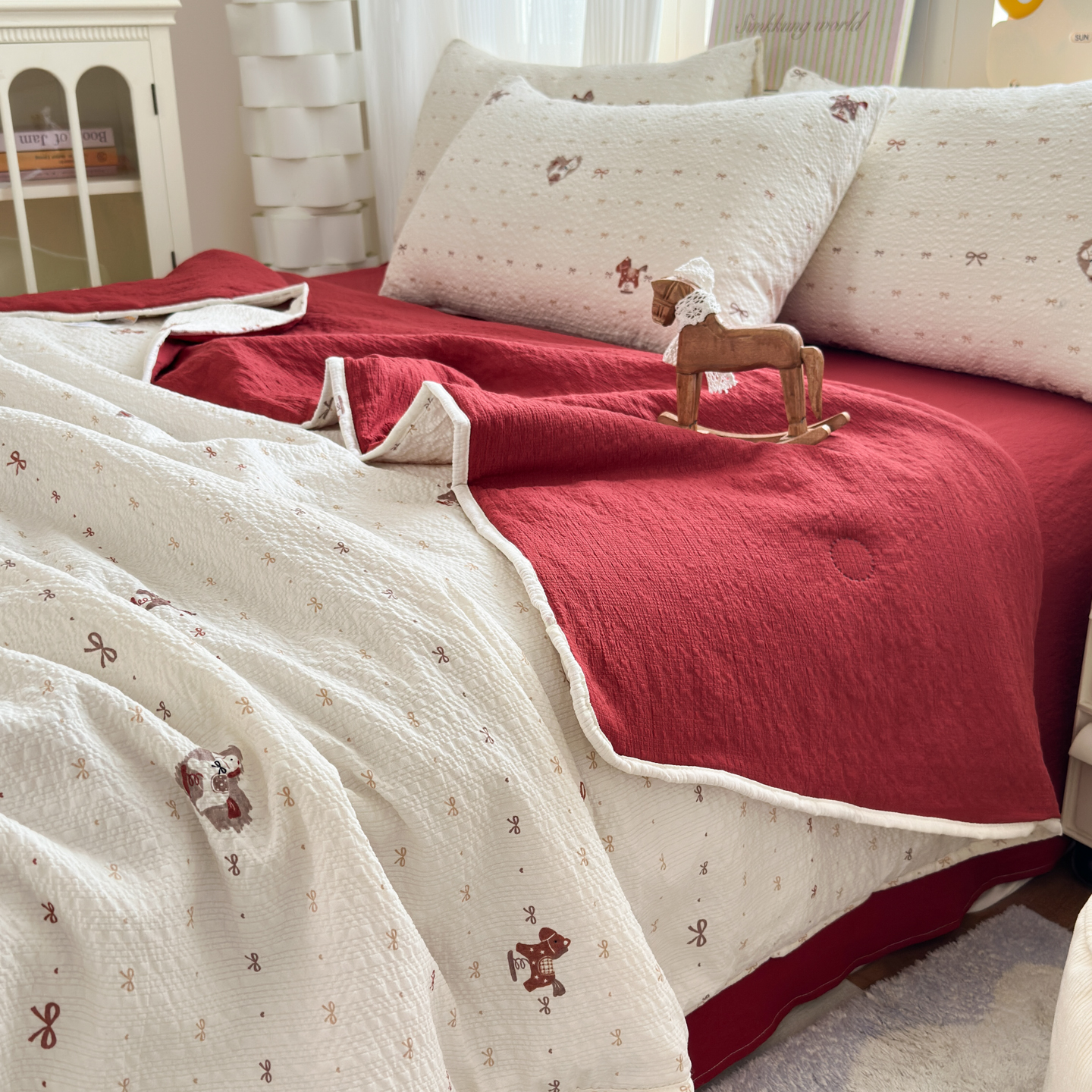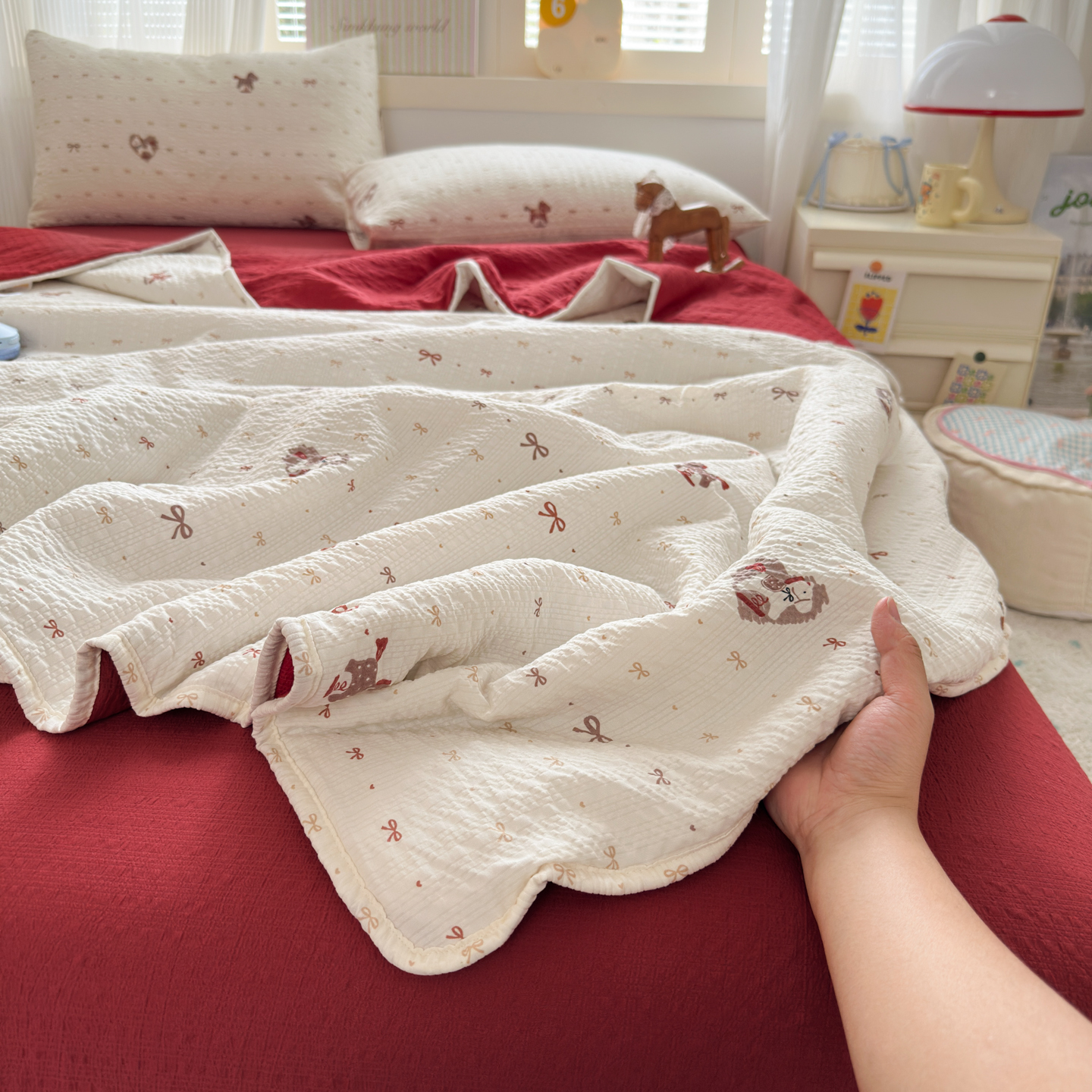 商品名称:德比尔斯 2026新款泡芙棉夏被四件套包边款 鸿运小马
