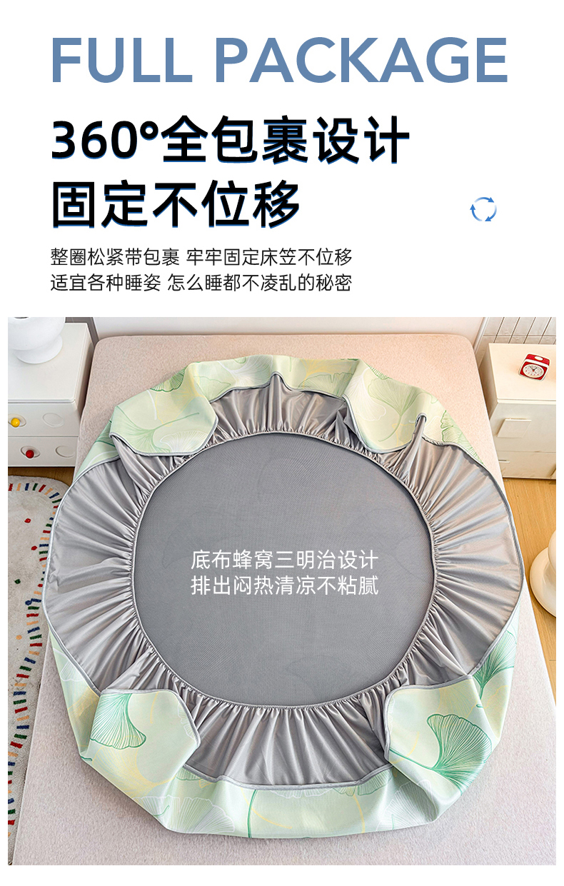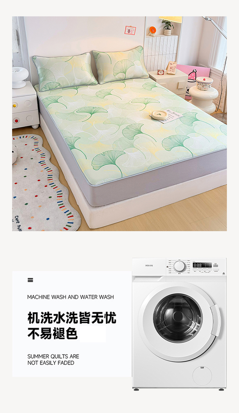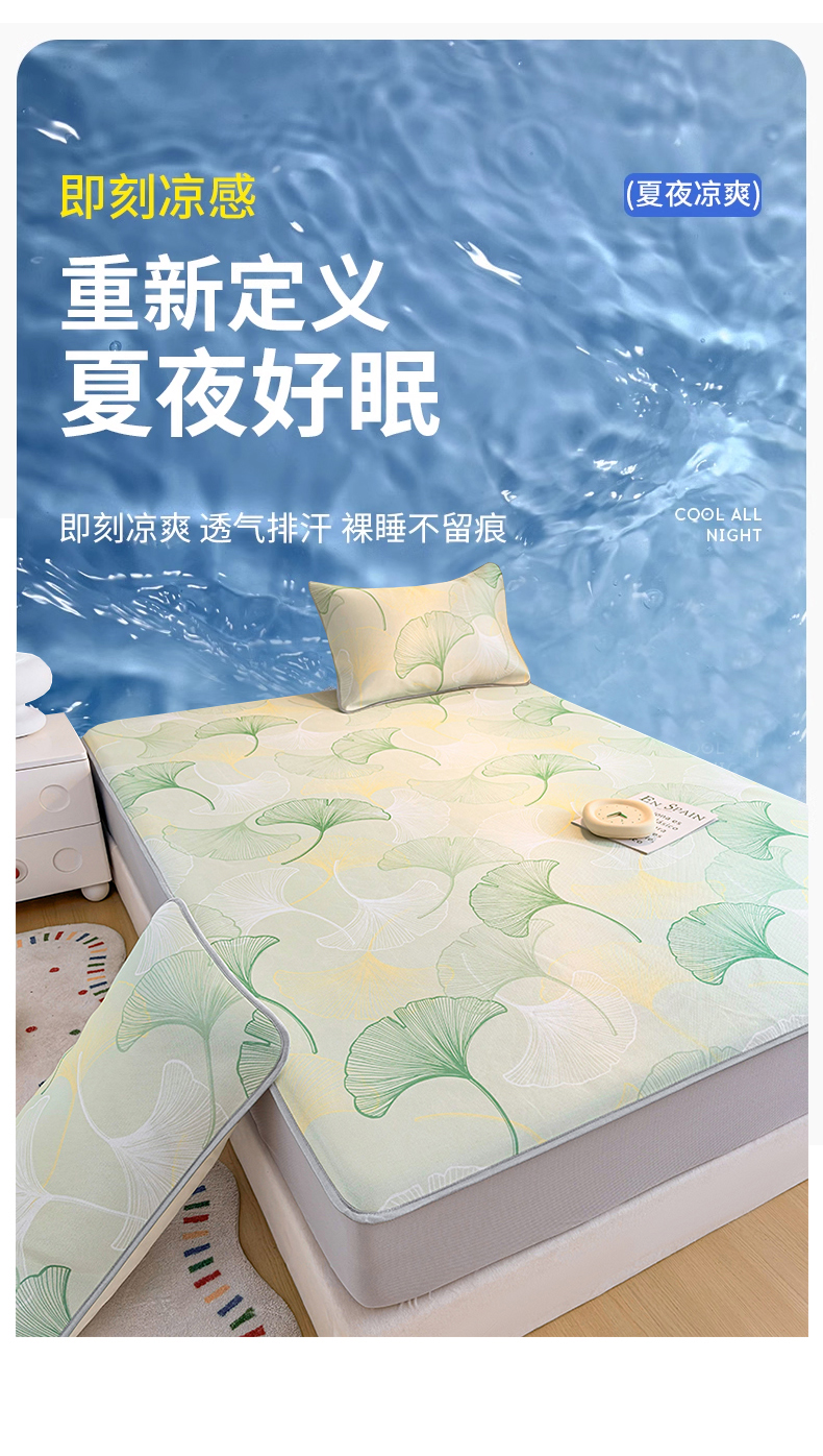 商品名称:小萌虎 2026新款碳光冰丝凉席床笠款拍法一 银杏叶