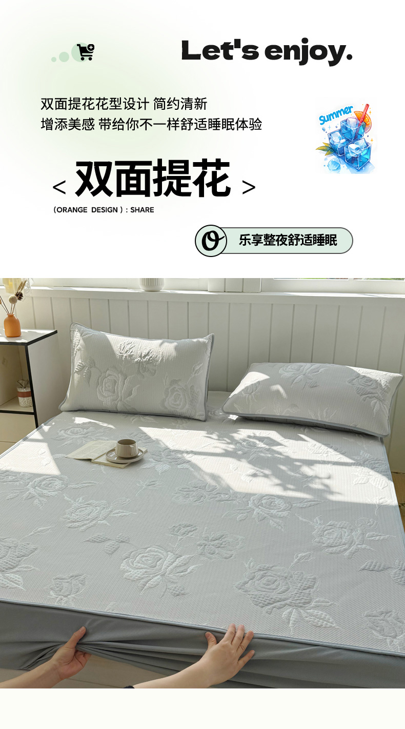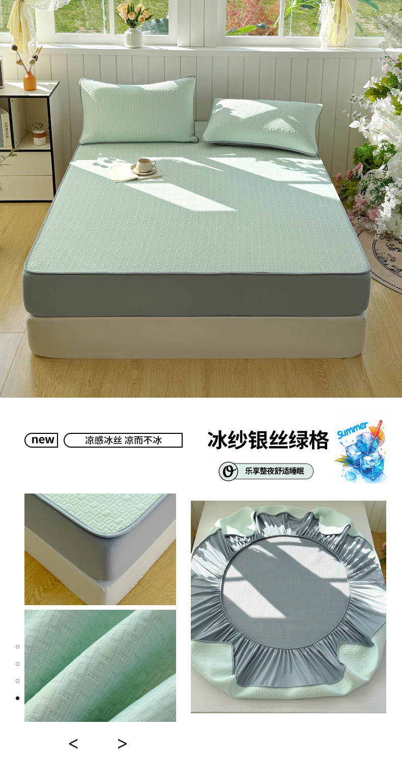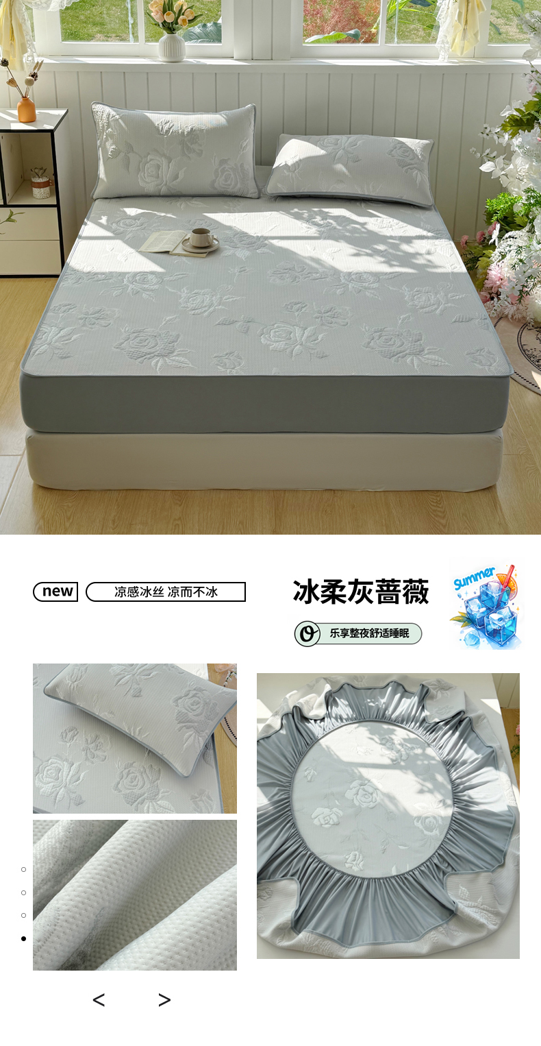 (总)恋佳居 2026新款A类PE中分子凉感丝床裙凉席,冰柔粉蔷薇,冰柔灰蔷薇,冰柔蓝蔷薇,冰沙银丝灰格,冰沙银丝蓝色,冰沙银丝绿格